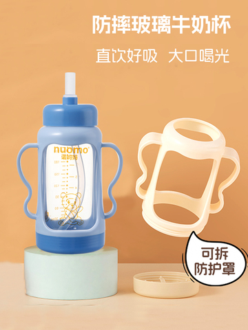 诺妈妈宝宝牛奶杯儿童水杯喝奶杯防摔玻璃奶瓶可微波炉加热吸管杯