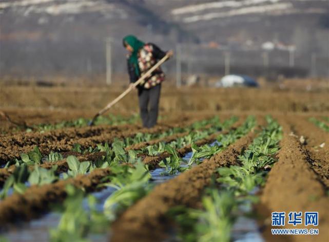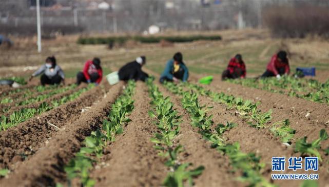 3月13日,河北省唐山市玉田县唐自头镇燕山口村的农民在菜田中劳作。新华社发(刘满仓 摄)