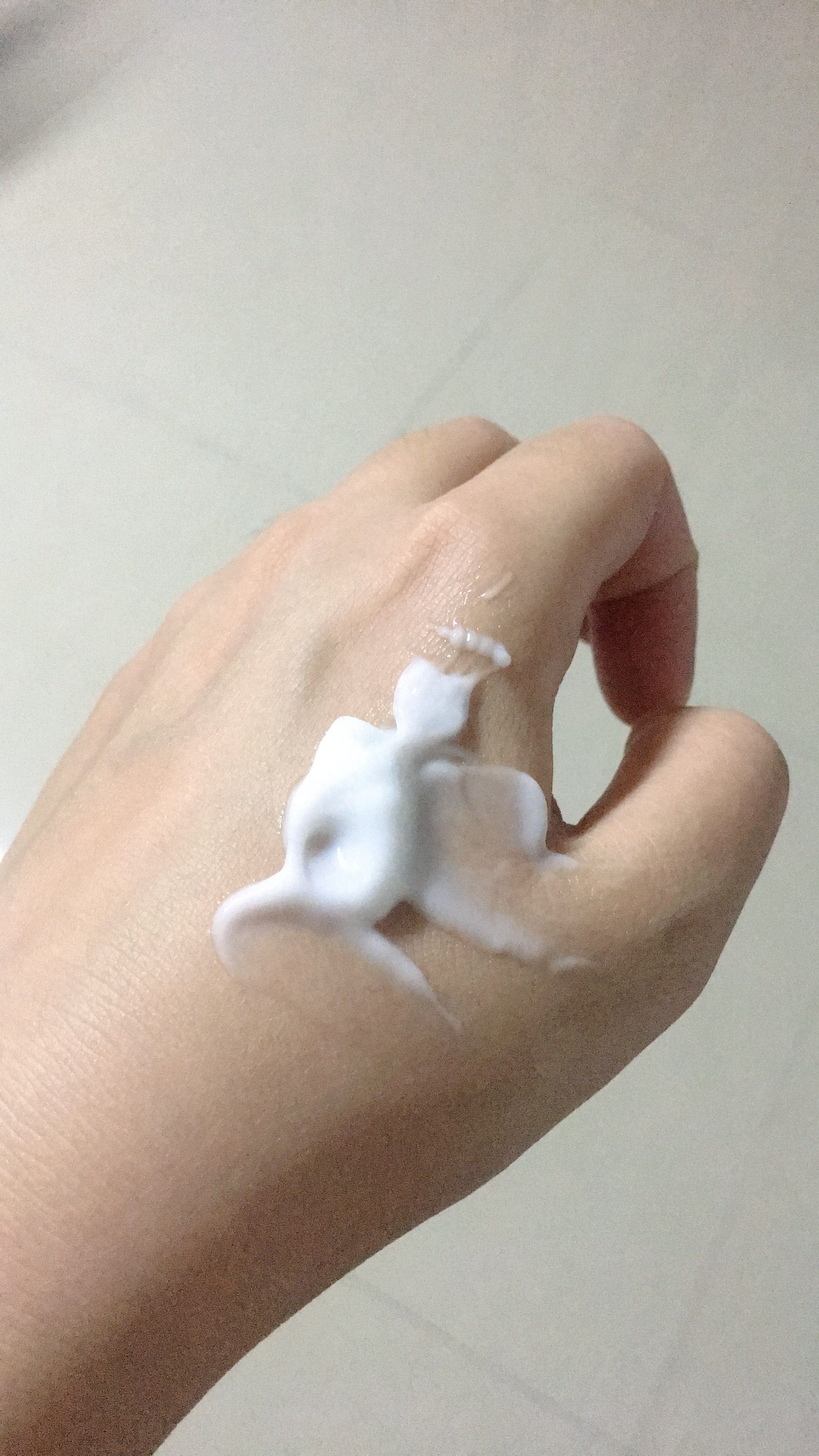 敷面膜前先涂抹精华霜,是类似面霜的质地,很好推开