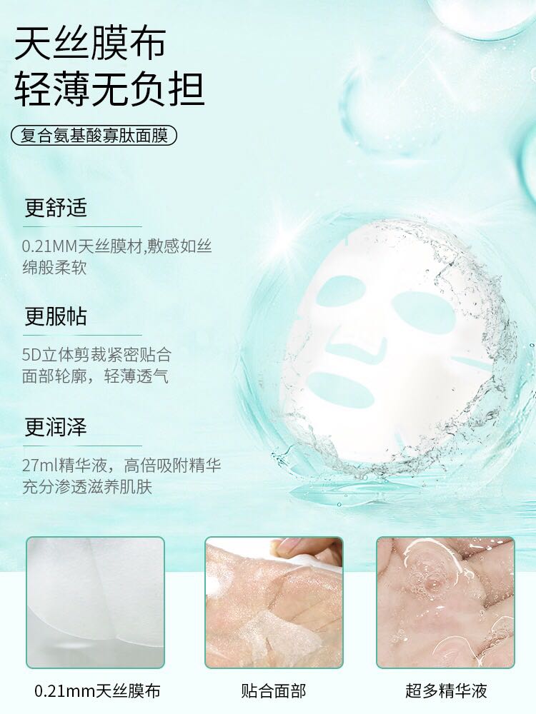 优点:面膜薄厚适中,吸收力好,精华也不算粘稠,喜欢,用完用脸软软的,弹弹的,喜欢的