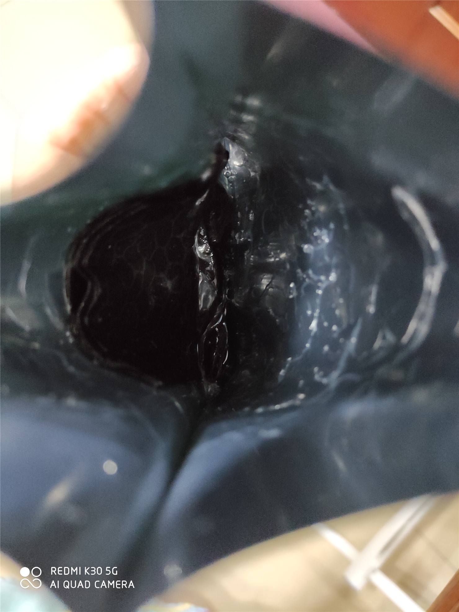 拿出面膜,黑色蚕丝膜布上满满的精华液,看着就很补水保湿,黑色膜布上还有蜂窝状花纹。