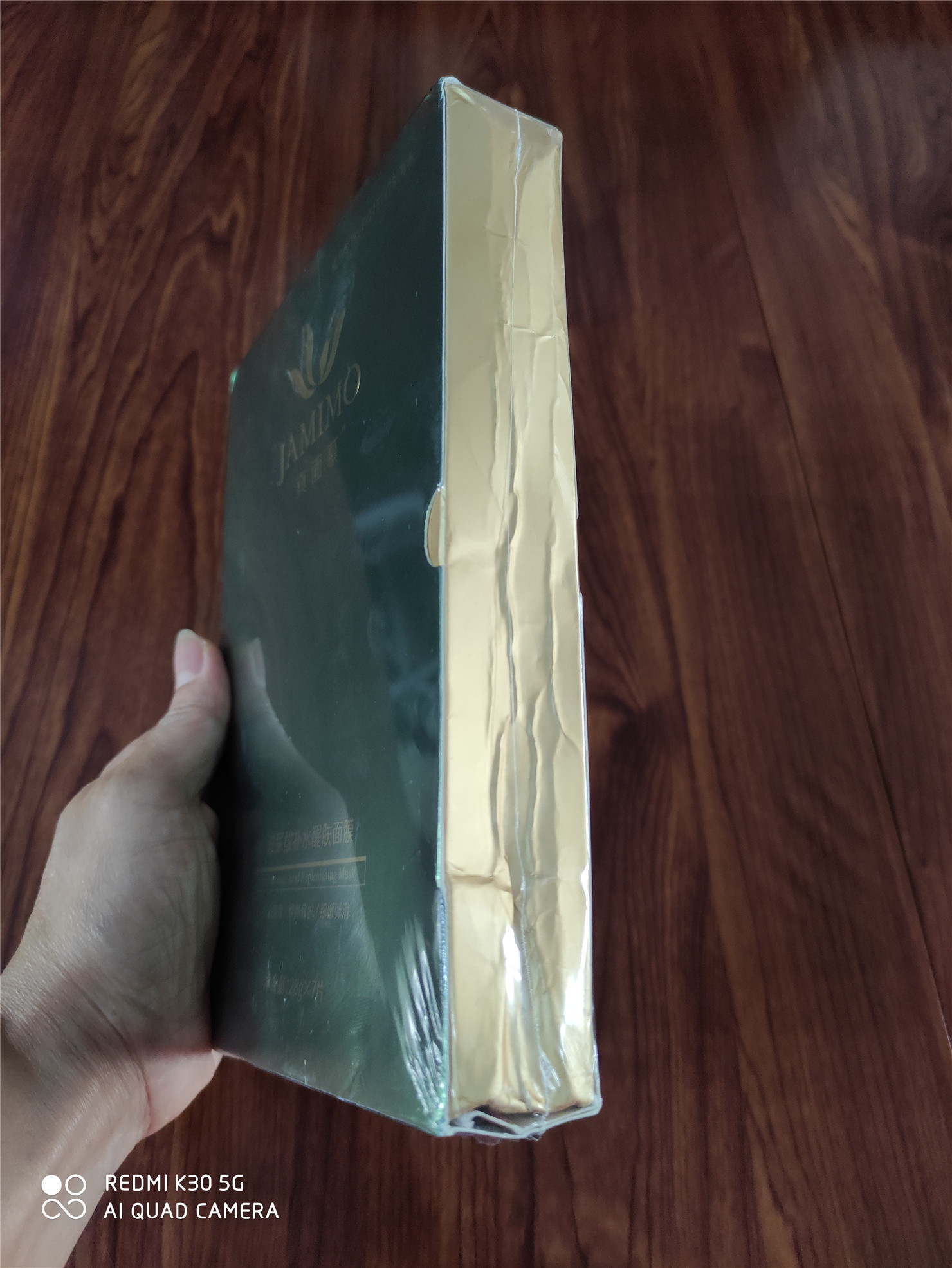 JAMIMO真面慕玻尿酸补水面膜包装盒里外双盒设计,设计很独特。