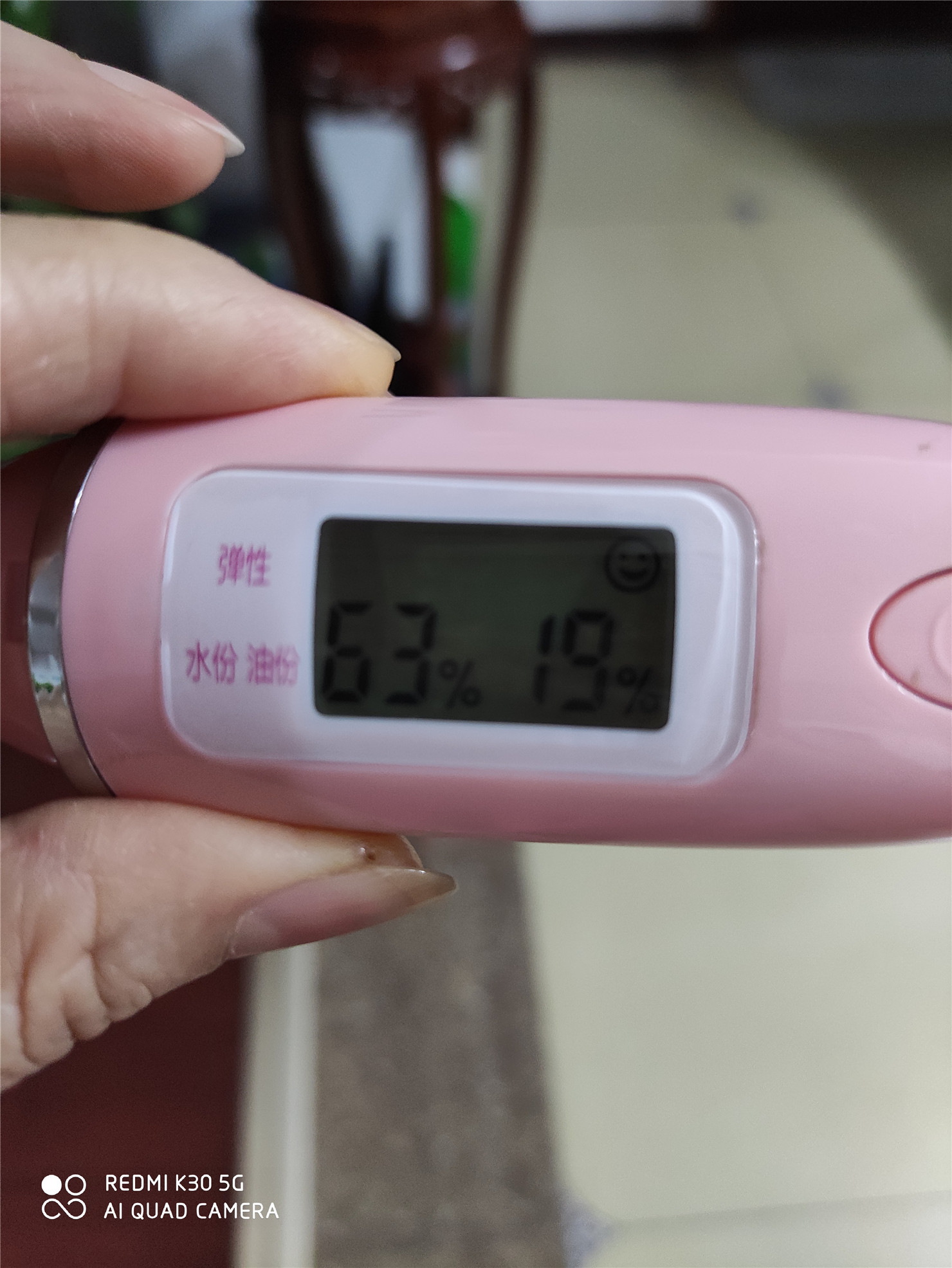 20分钟后把面膜取下来,用皮肤测试仪测试了一下,数据让人惊喜,皮肤变得水水的,暗沉的肤色也改变了很多。