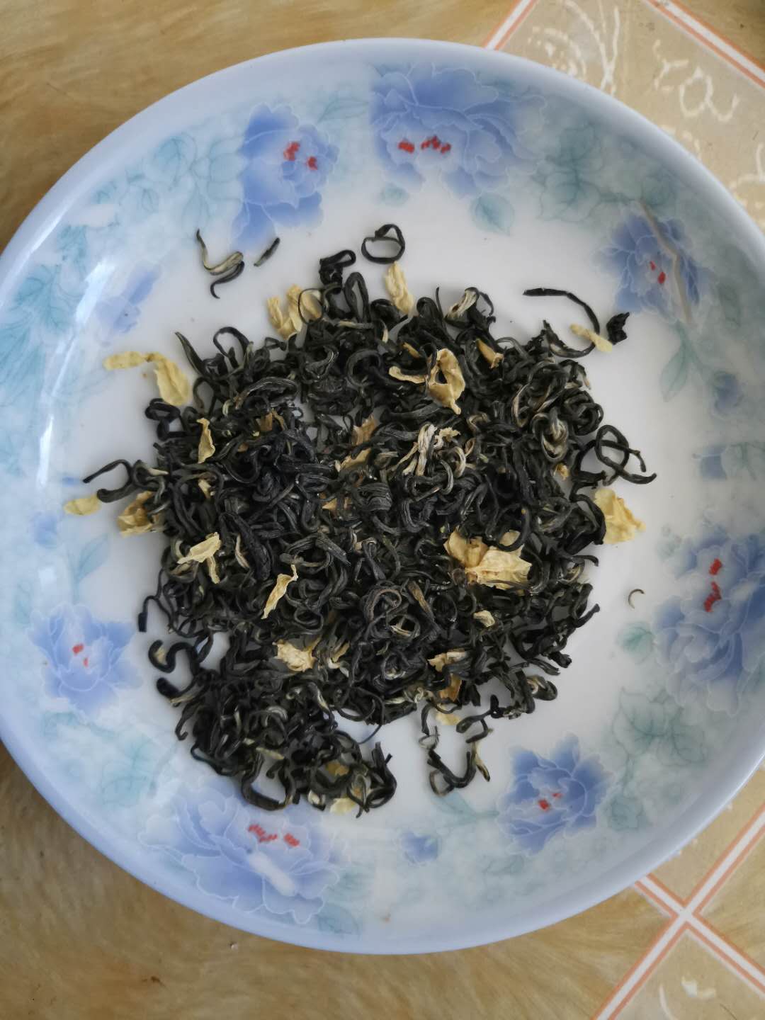 茉莉飘雪采用早春嫩芽为茶坯,与含苞未放的茉莉鲜花混合窨制而成,并保留干花瓣在茶中。此茶紧细挺秀,白毫显露,外形甚是美观。