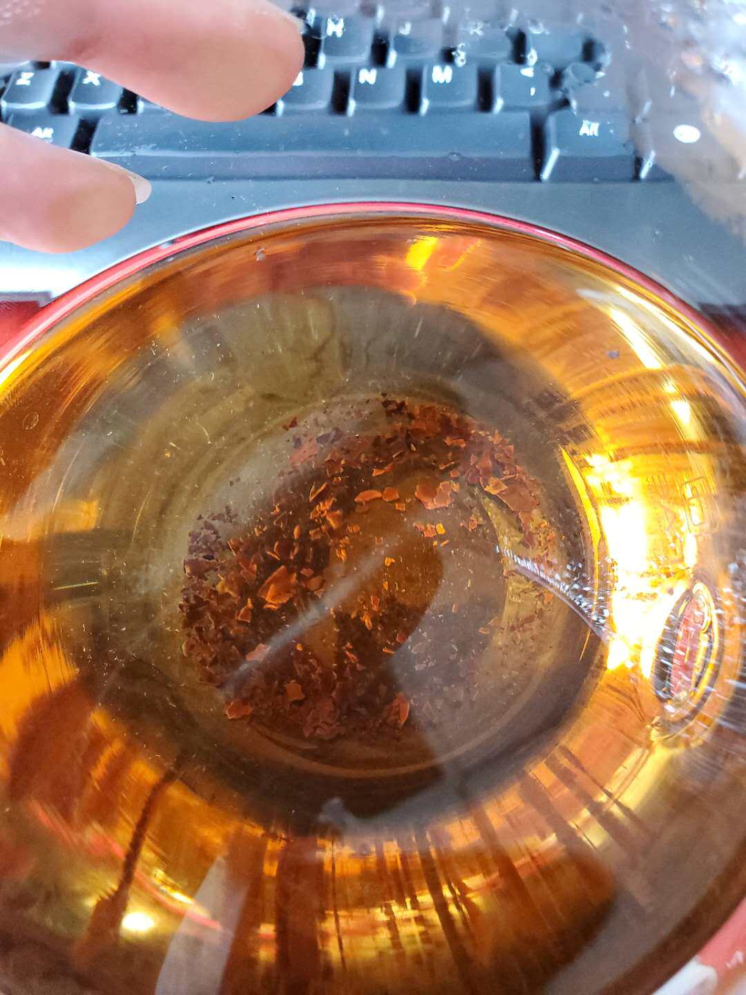 头道汤,入口有点柔顺,香气扑来,有种迸发出来的感觉,扑鼻而来,喝完,闻了下品茗杯,挂杯香,很明显。