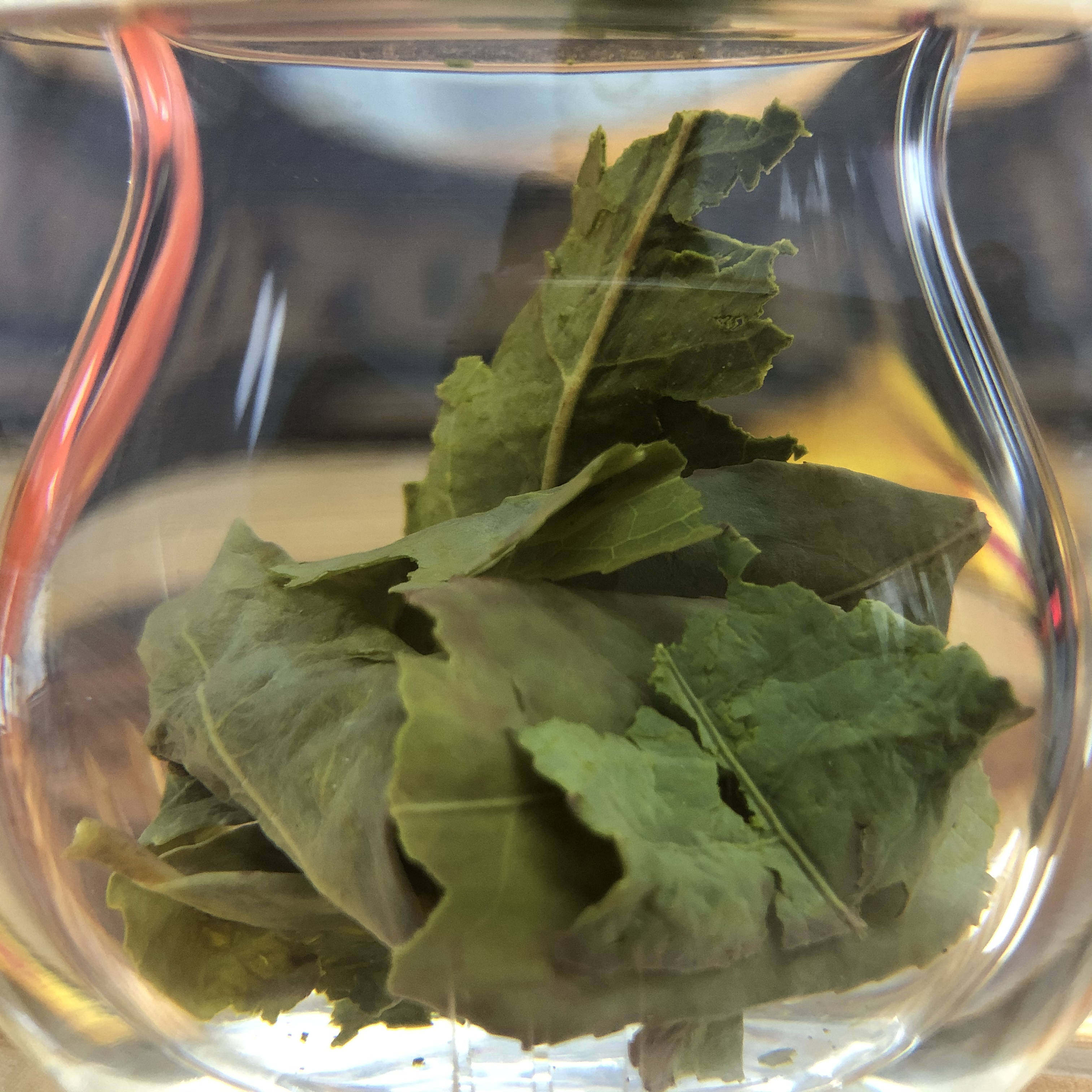 冲泡开来,叶底完整,形态优美,老嫩度一致,叶片深绿肥厚。