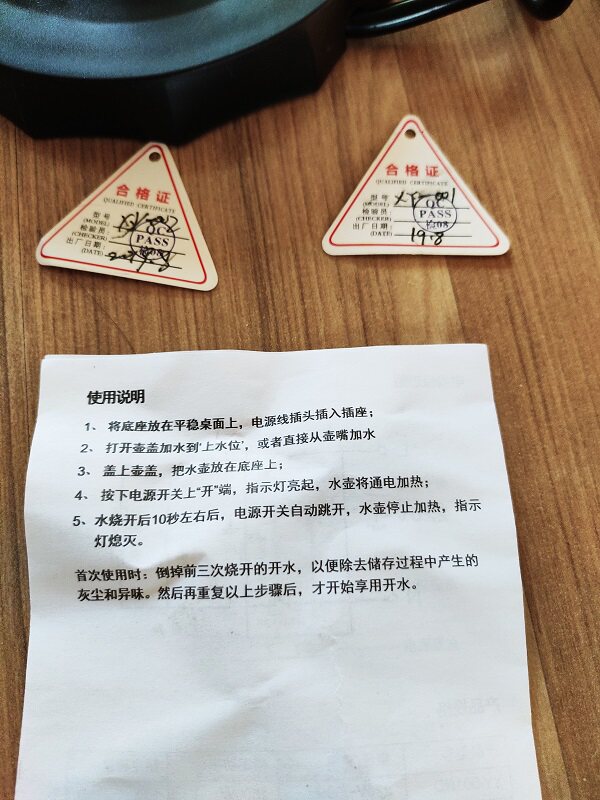 英国STRIX品牌温控器,底座和壶身分别出具合格证,彰显企业的匠心。使用说明条理清晰,简单明了,国家知识产权局申长雨局长签发的专利证书,国家强制性产品认证证书、认证报告一应俱全,另外产品保修终身。