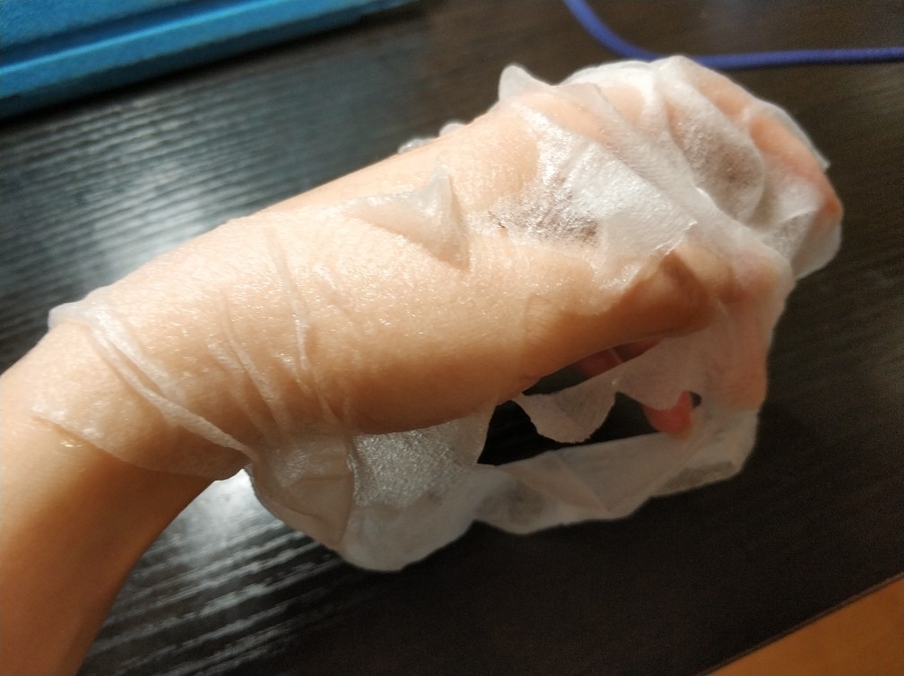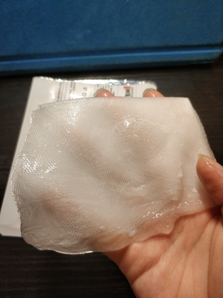 面膜的膜布非常轻薄,贴脸上几乎完全透明,贴合性很好。而且精华也挺多。