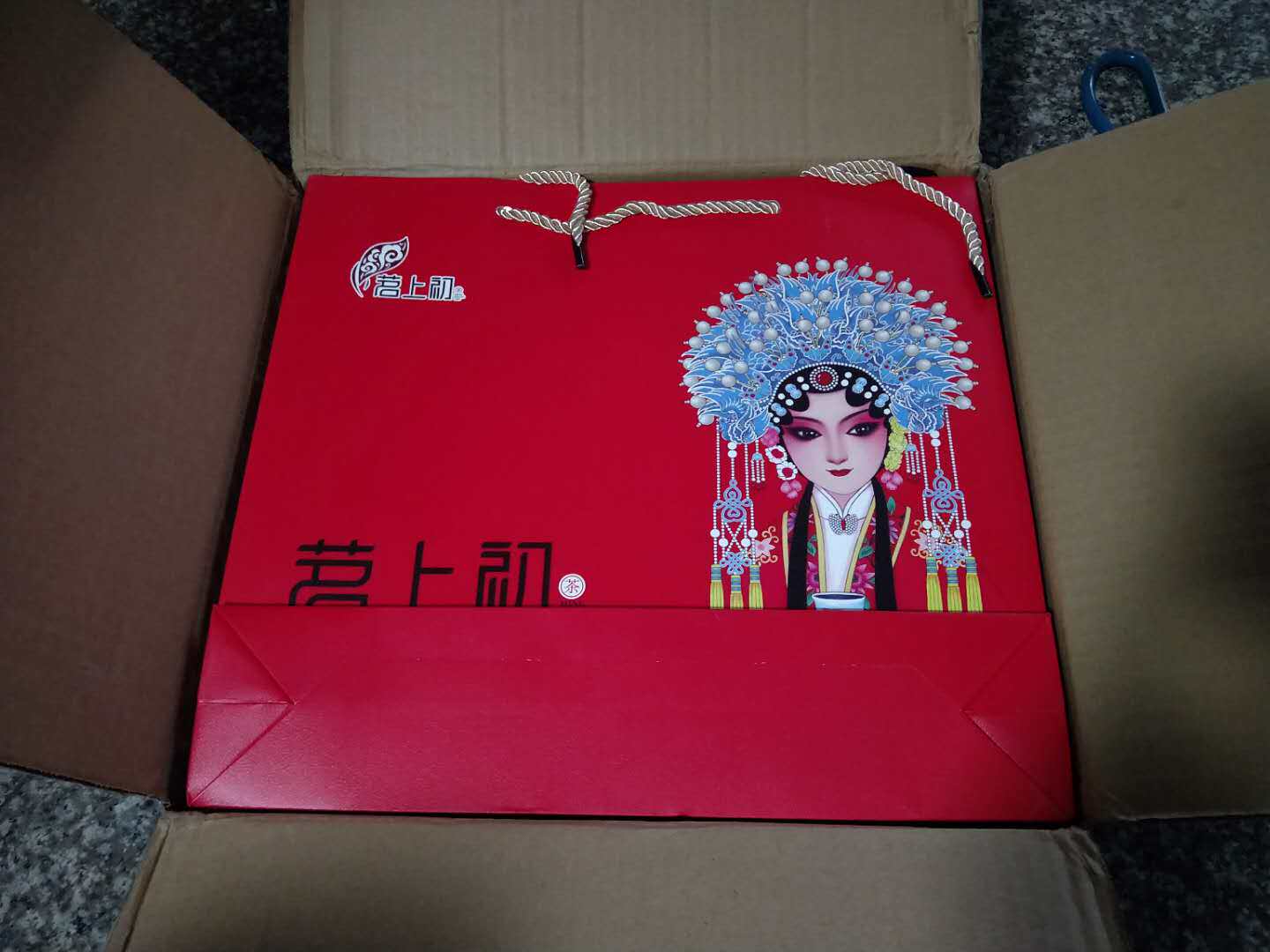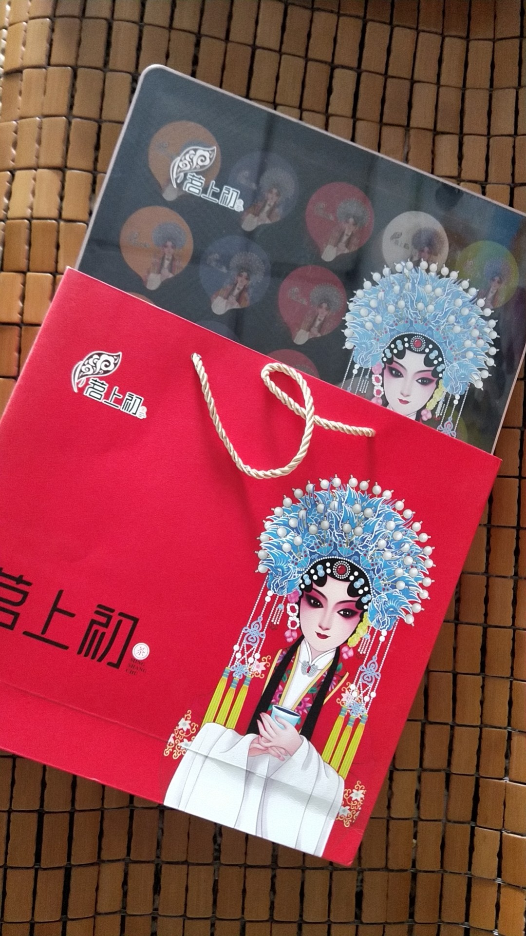 礼盒包装,还配备了礼品手提袋,戏曲人物脸谱造型精美。