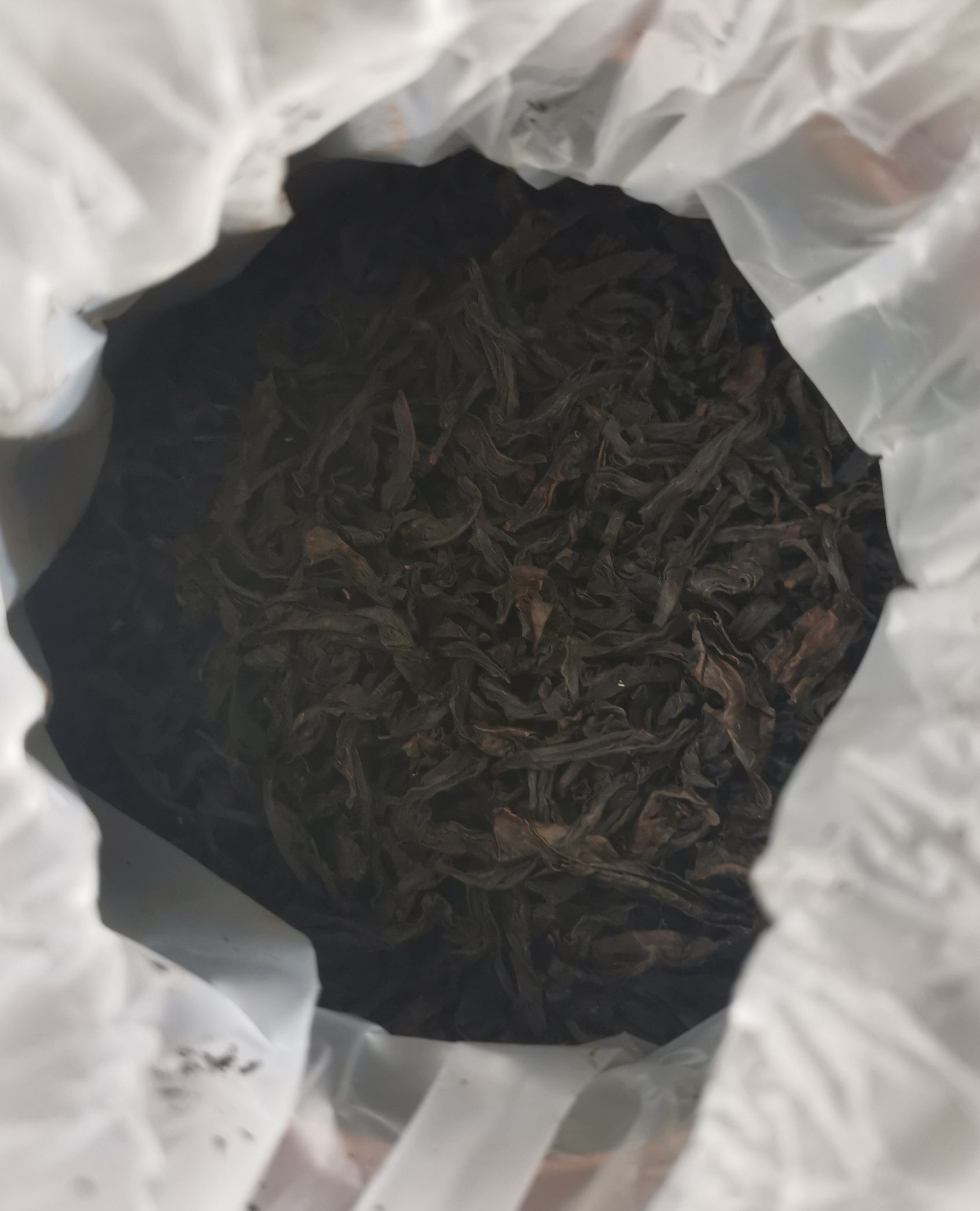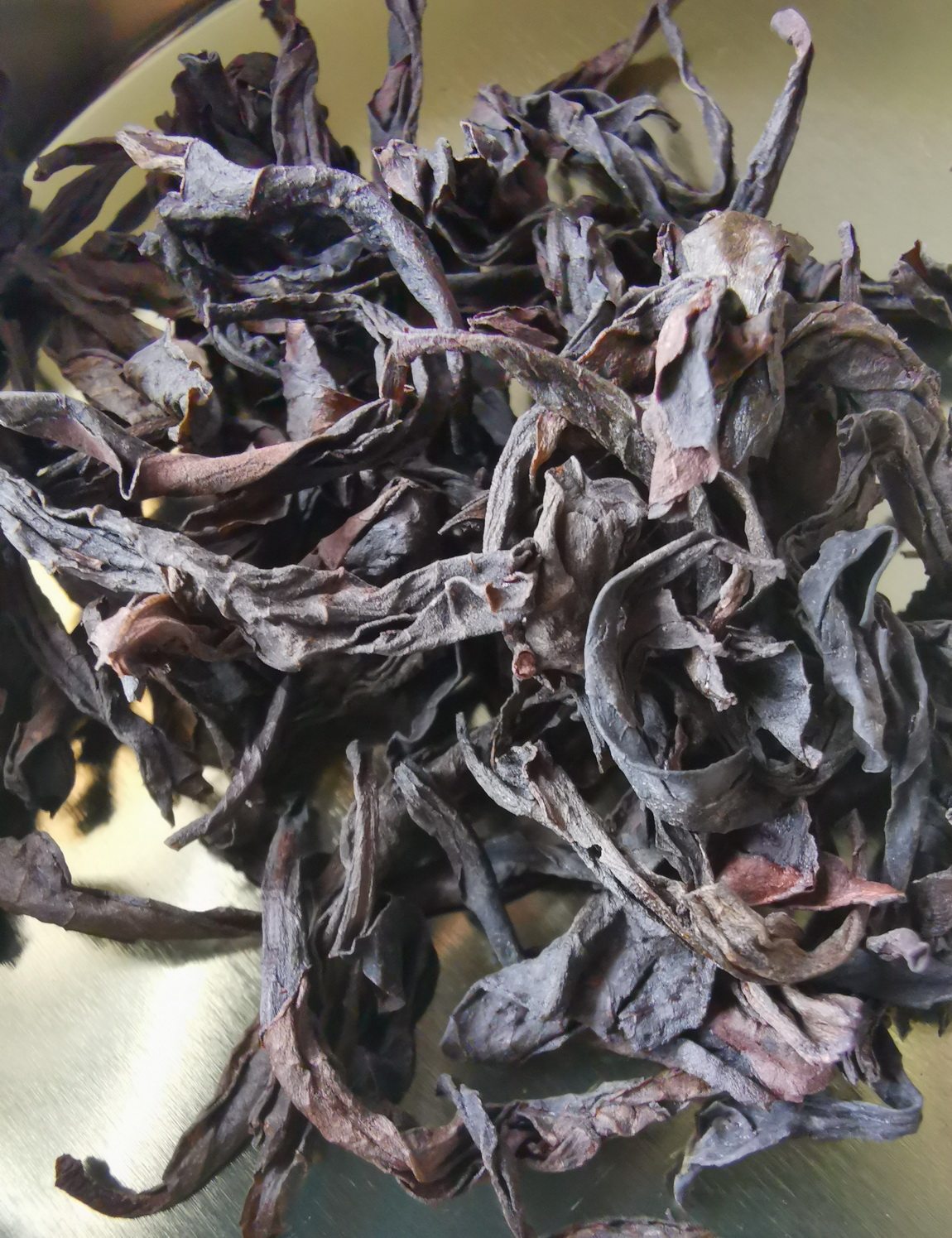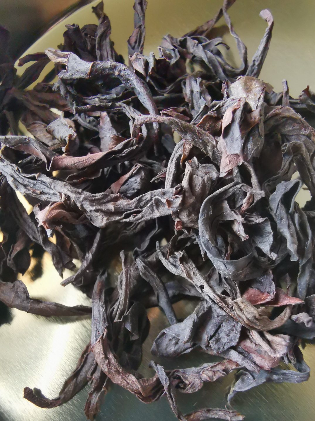 打开后,茶叶有股花香味,可以看见茶叶条索整齐,较紧结,色泽红褐相间。