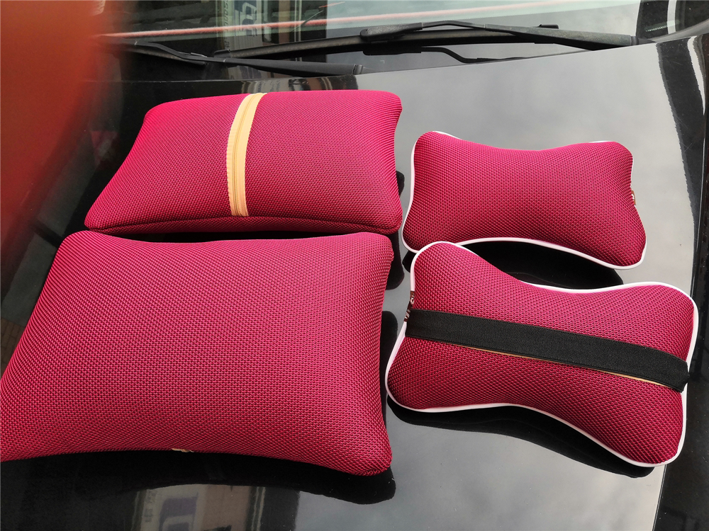 配套的腰靠和颈枕,带拉链,可看到里面的珍珠棉。冰丝纹路较为细腻。