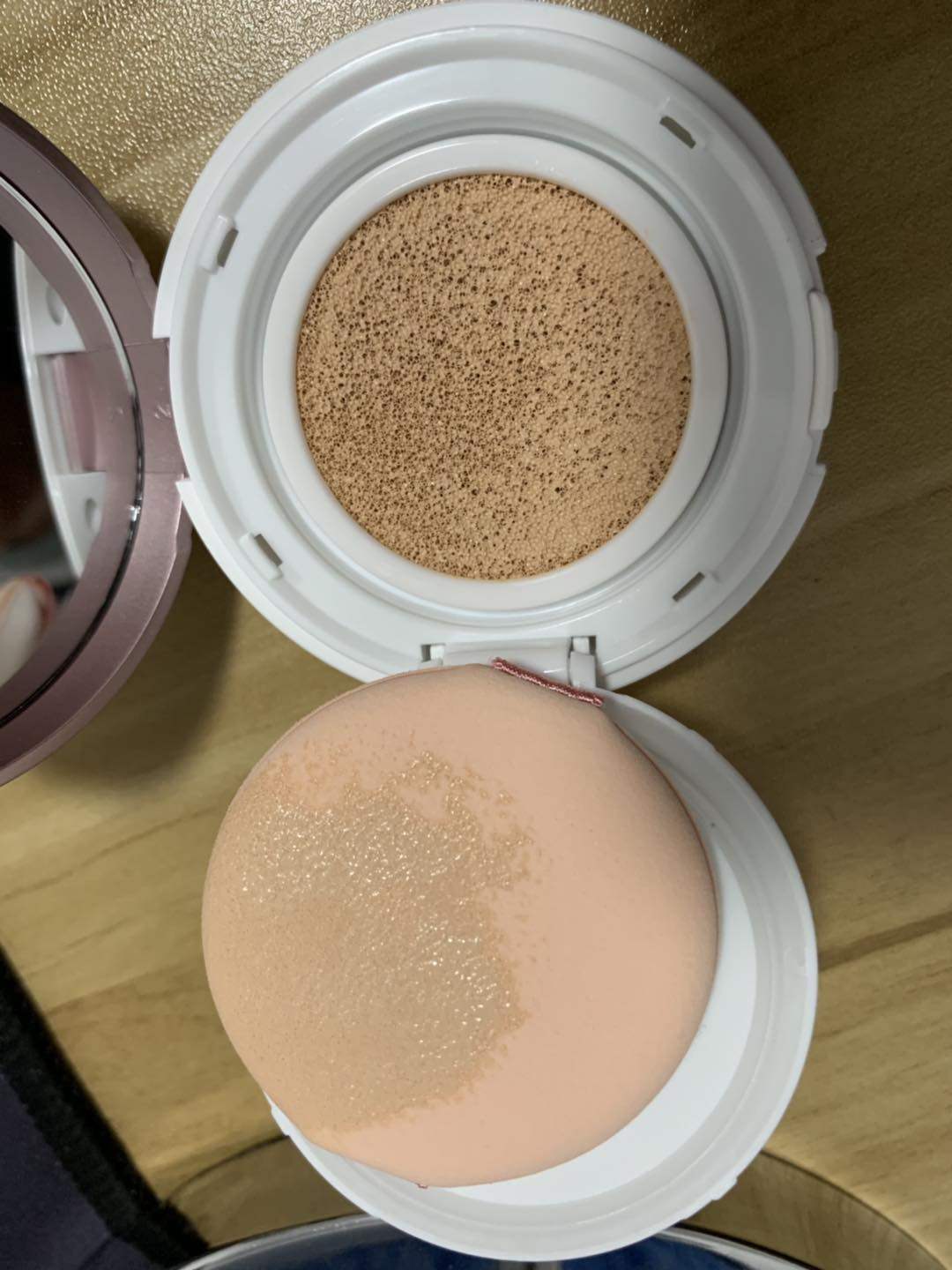 卖家真的好用心,收到宝贝是一个正装和一个小样装,一张小清新的信封。夏天临近,正需要一个轻薄气垫,方便,上妆细腻,随时可以补妆。色号b25,自然肤色不假白,不会像粉底液一样妆感厚重,轻微遮瑕,可以提亮肤色。