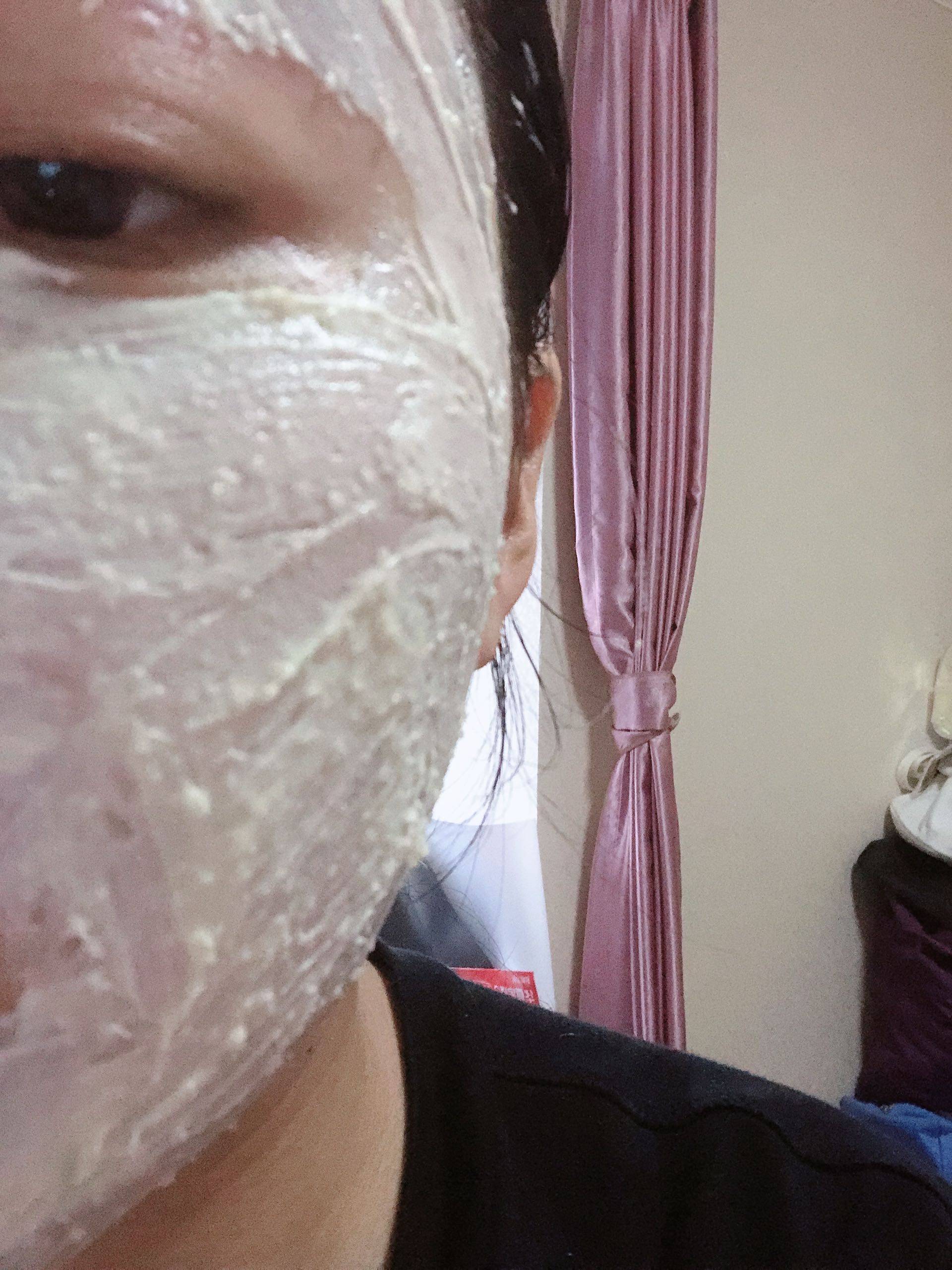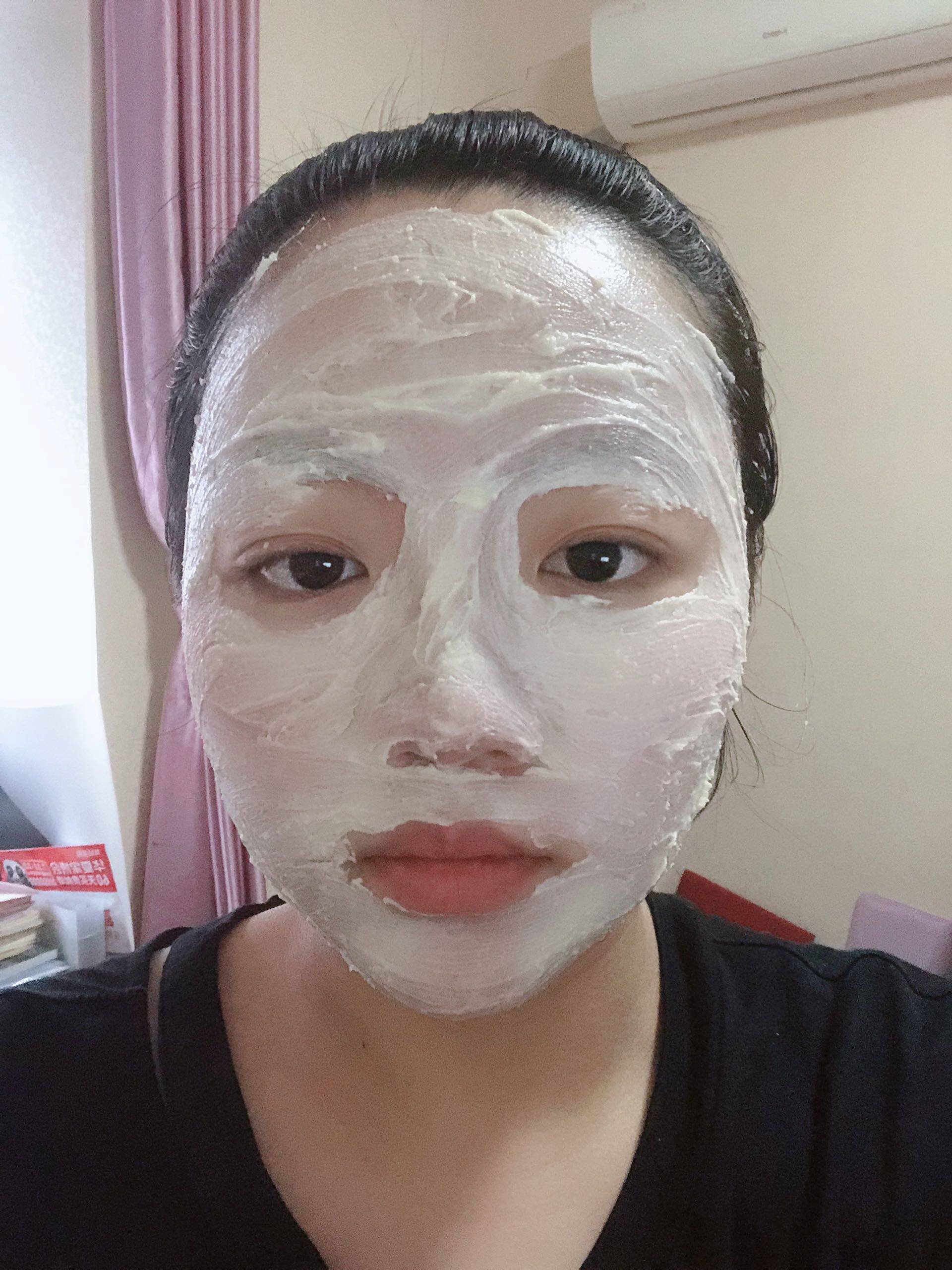 洗完脸,用了爽肤水,直接用手蘸取面膜涂抹全面,没有特意将面膜均匀抹开,所以能看出面膜表面是有颗粒感的...这样子维持20分钟,用按摩手法把面膜进行乳化..