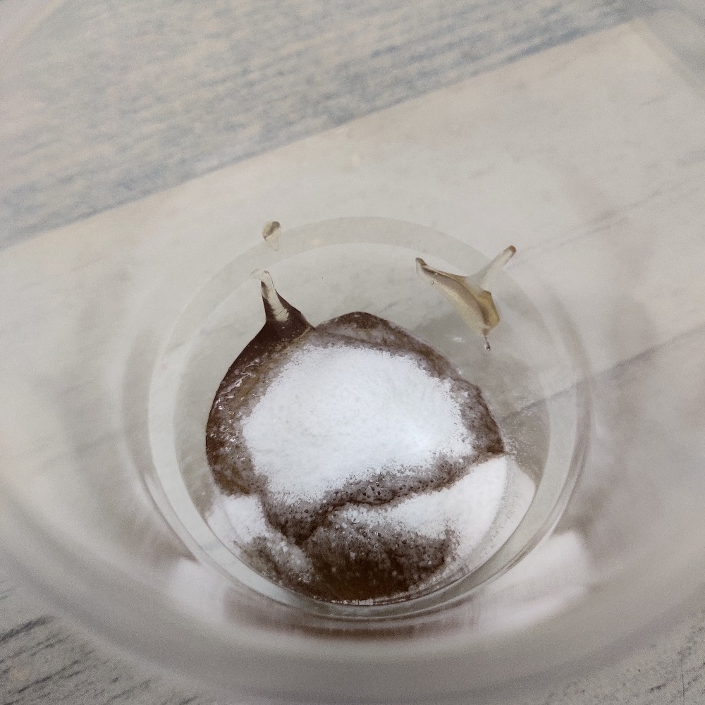 1剂和2剂搅拌混合后,能闻到稍微刺鼻的气味,也能看到凝胶和粉末融在一起时的氧化反映,起了很多泡泡。