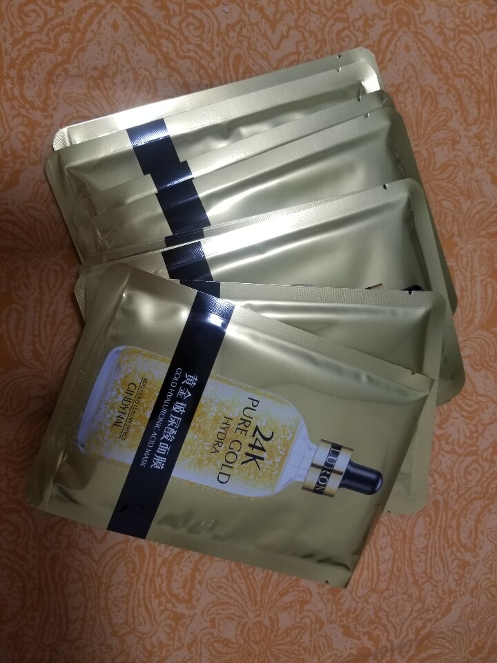 收到了两盒 今天试用了一贴 膜布较薄 相对比较服帖 膜布特点 眼睛部分比较细长 好处就是眼镜周围能照顾到 缺点是精华很容易进眼睛 我是比较敏感的肤色 这款面膜不会刺激皮肤 进眼睛也不会眼睛痛 这点还不错 膜布偏扁 感觉额头照顾的不如左右脸全面 膜布韧性有点小 所以不能太用力 太用力会把膜布扯坏 另外我以为里面的精华会个外表的精华样子一样有黄金科技呢 打开是纯透明的