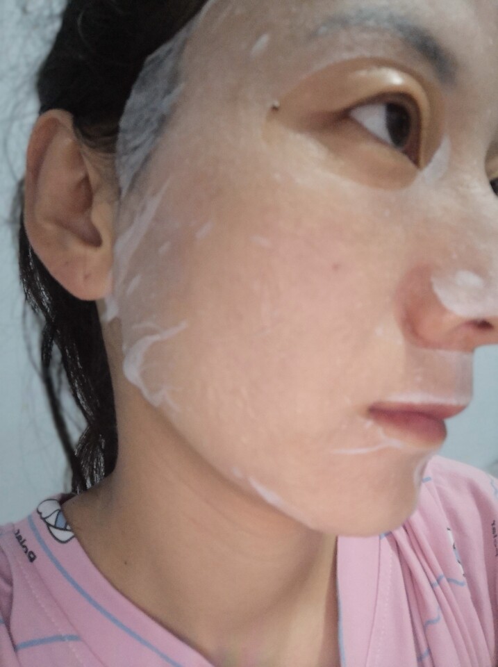 等面膜水把面膜纸完全滋润以后贴在脸上,里面一层厚的,一层薄的贴,那层薄的就行,贴完以后脸水润润的。没有不适感。