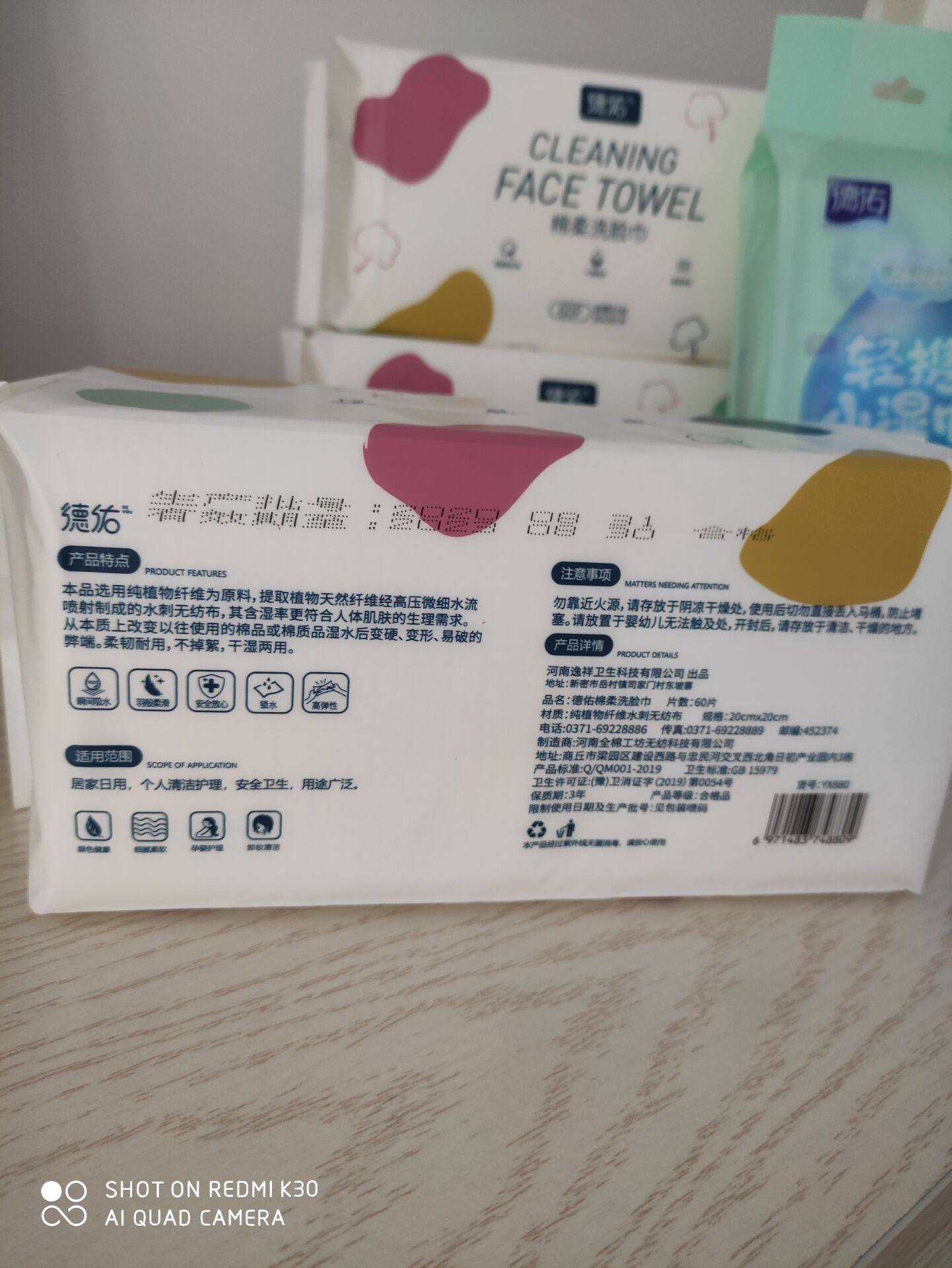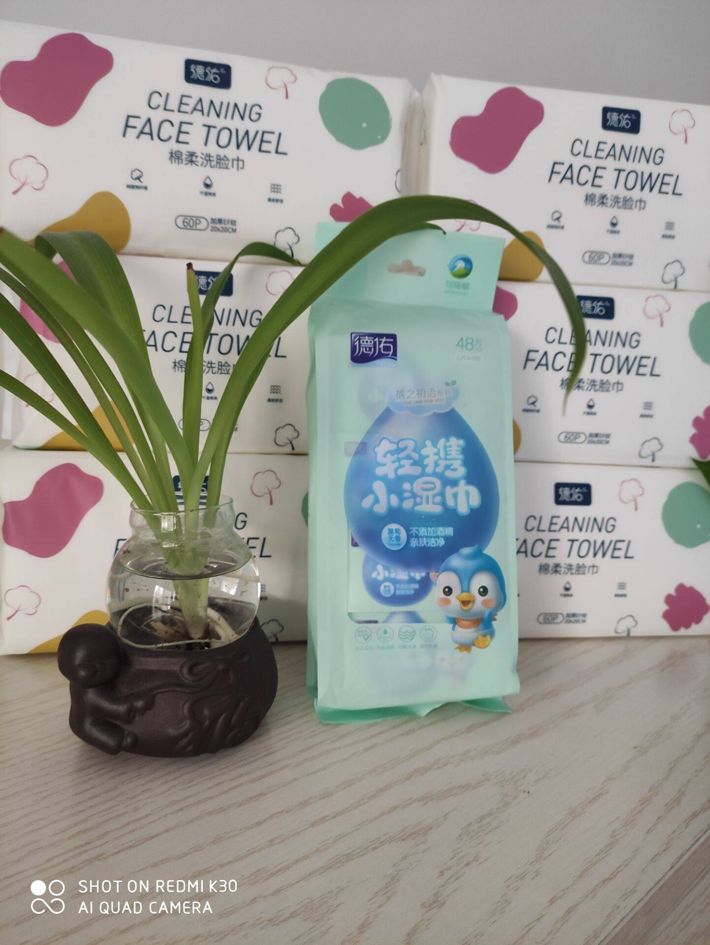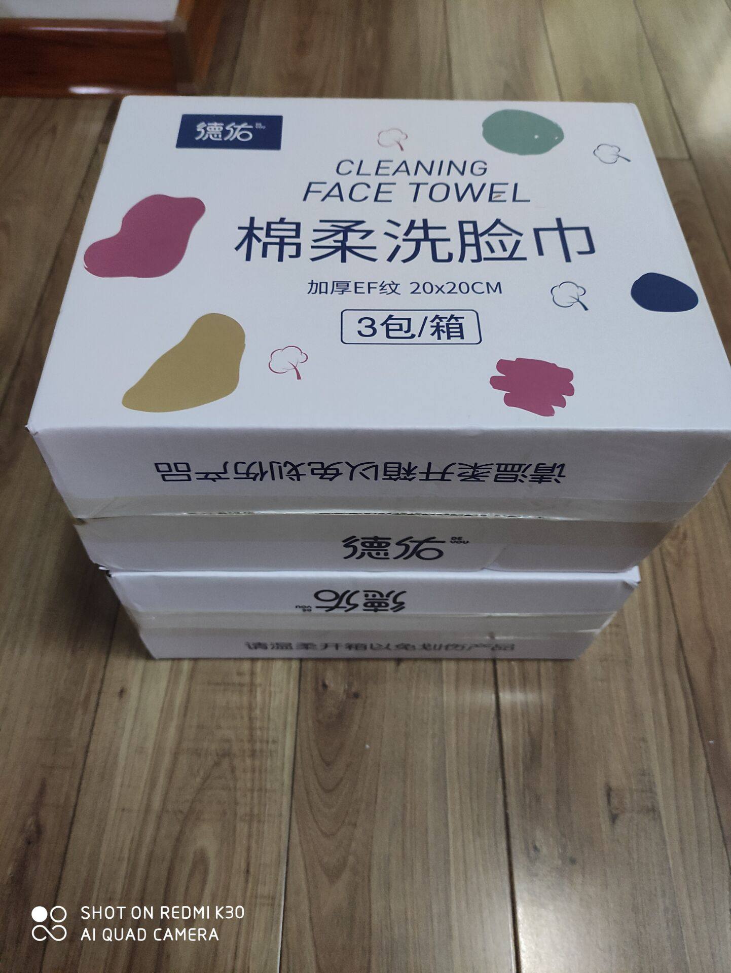 发货及时,物流给力。满满两大箱德佑洗脸巾极速到货。德佑是性价比超级高的一款洗脸巾,能干湿两用的棉柔巾,而且包装也很好看。店家还贴心赠送了4小包湿巾。在此谢谢老板!