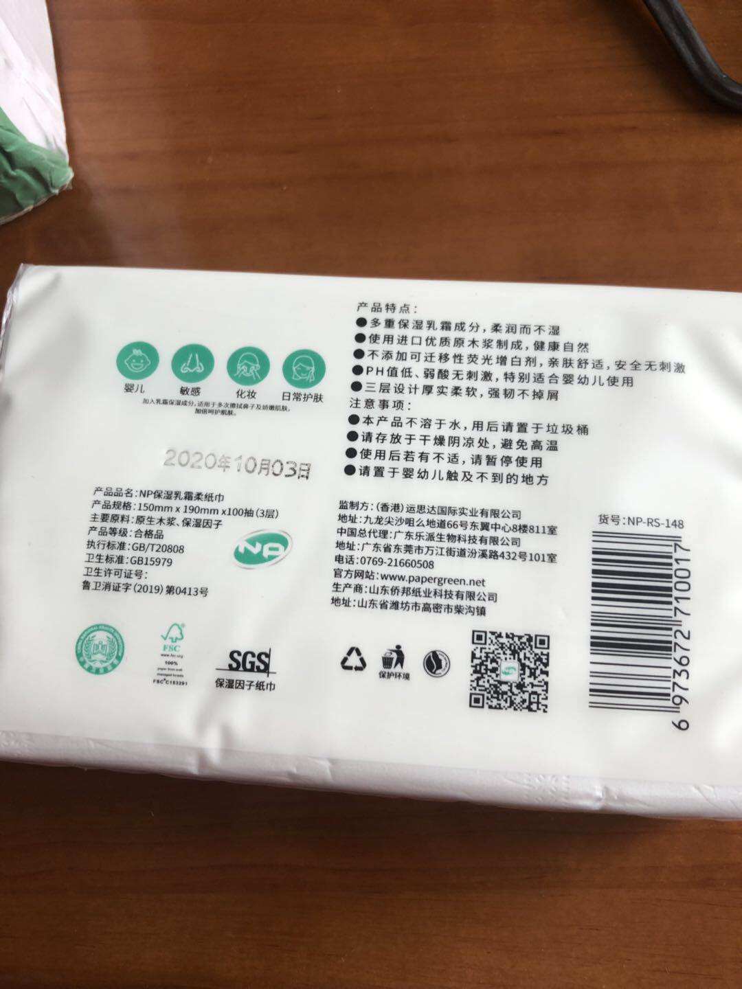 优点:包装严整,标识清晰全面,纸巾柔软亲肤,适用于婴儿和鼻炎,小巧易携带。