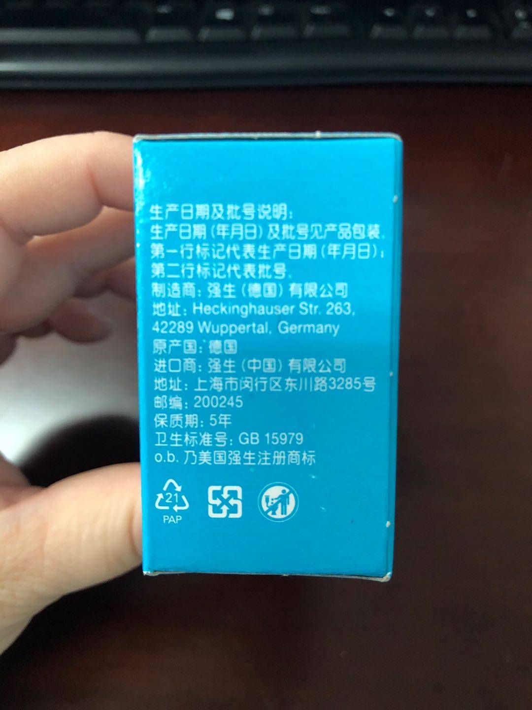 强生OB内置式卫生棉条原产国是德国,保质期为5年。