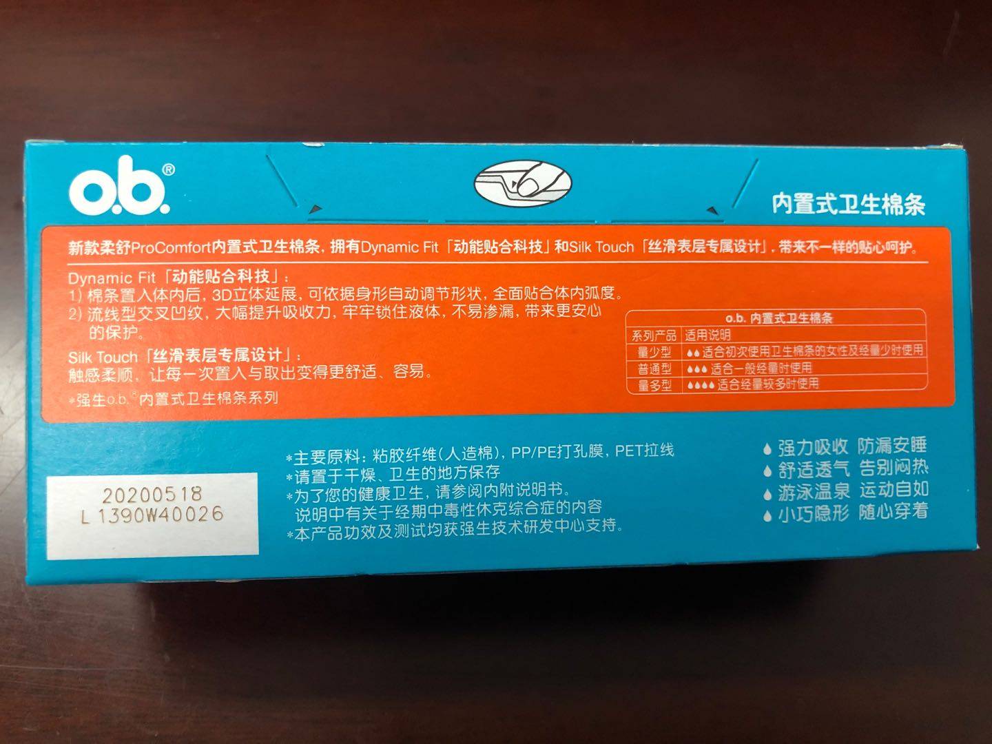 优点:使用OB内置式卫生棉条的好处:强力吸收、防漏安睡、舒适透气、告别闷热、游泳温泉、运动自如、小巧隐形、随心穿着。生活中,我已经抛弃了姨妈巾,一直使用着内置式卫生棉条。操作简单,舒适透气,非常好用,希望越来越多的女性朋友也能早日加入到我们的队伍中来,一定会有美好的体验,让OB内置式卫生棉条成为我们的好帮手!