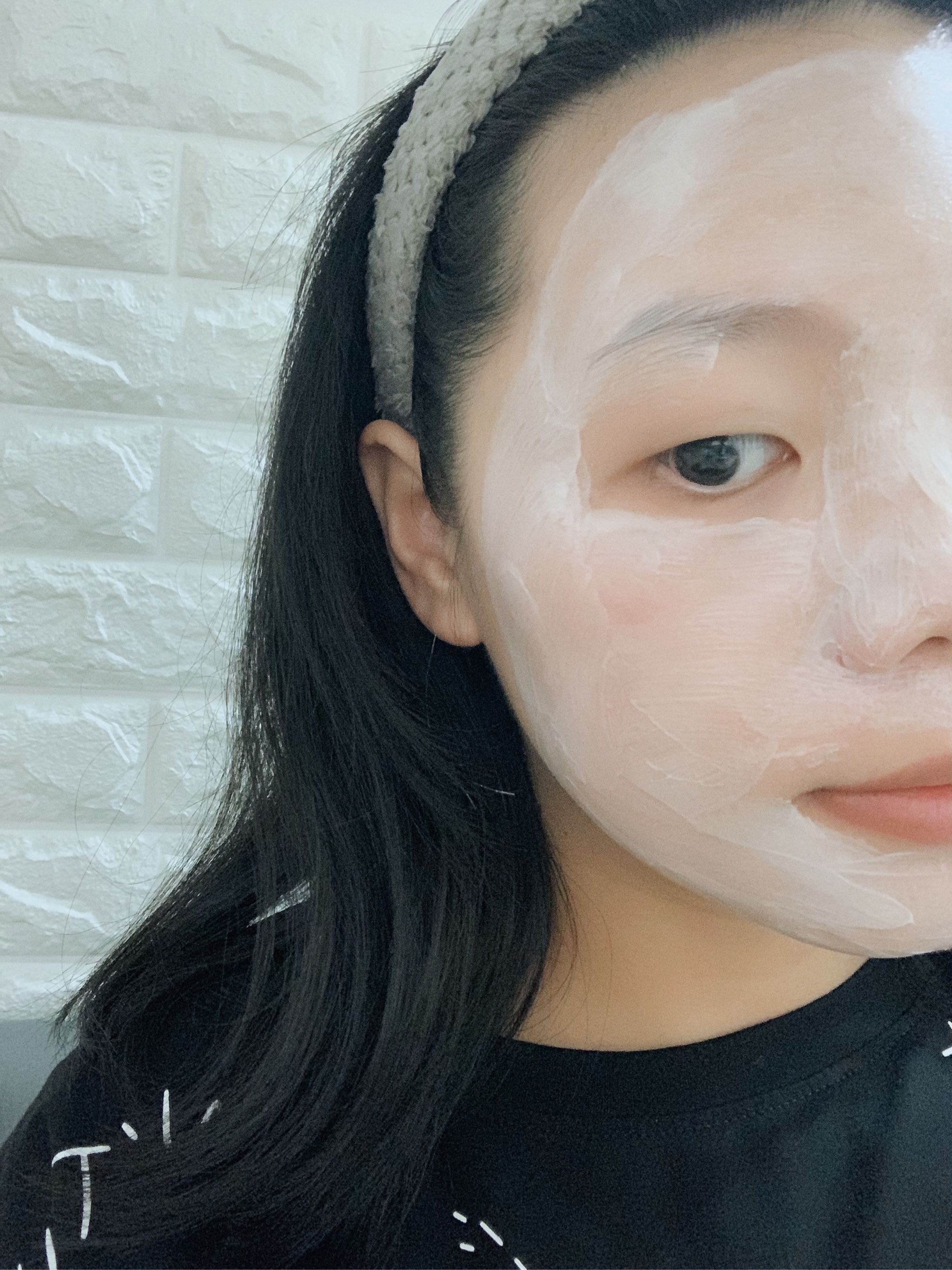 洁面后,直接均匀地涂抹在脸上,我算是厚敷的,最好是遮住皮肤的肤色,我是在脸上停留了大概20分钟(一般是15分钟),爽肤水倒在化妆棉,擦拭干净即可。
