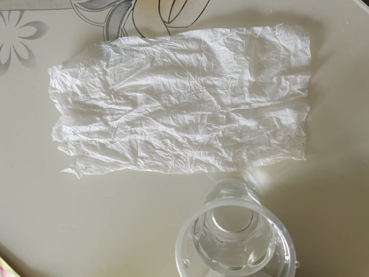 把纸巾折叠放杯里用水浸过,拿出还能展开