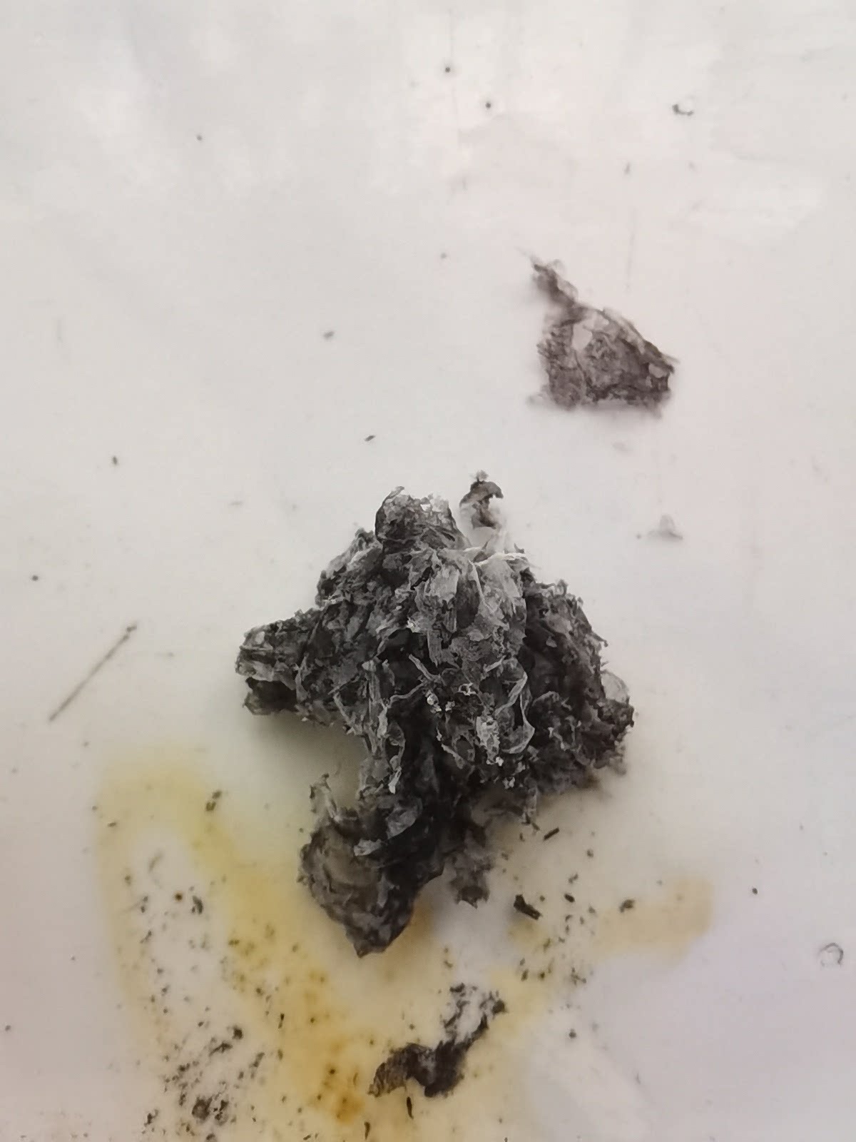 因为光线问题,实际上的灰烬比照片上看起来灰白色更明显