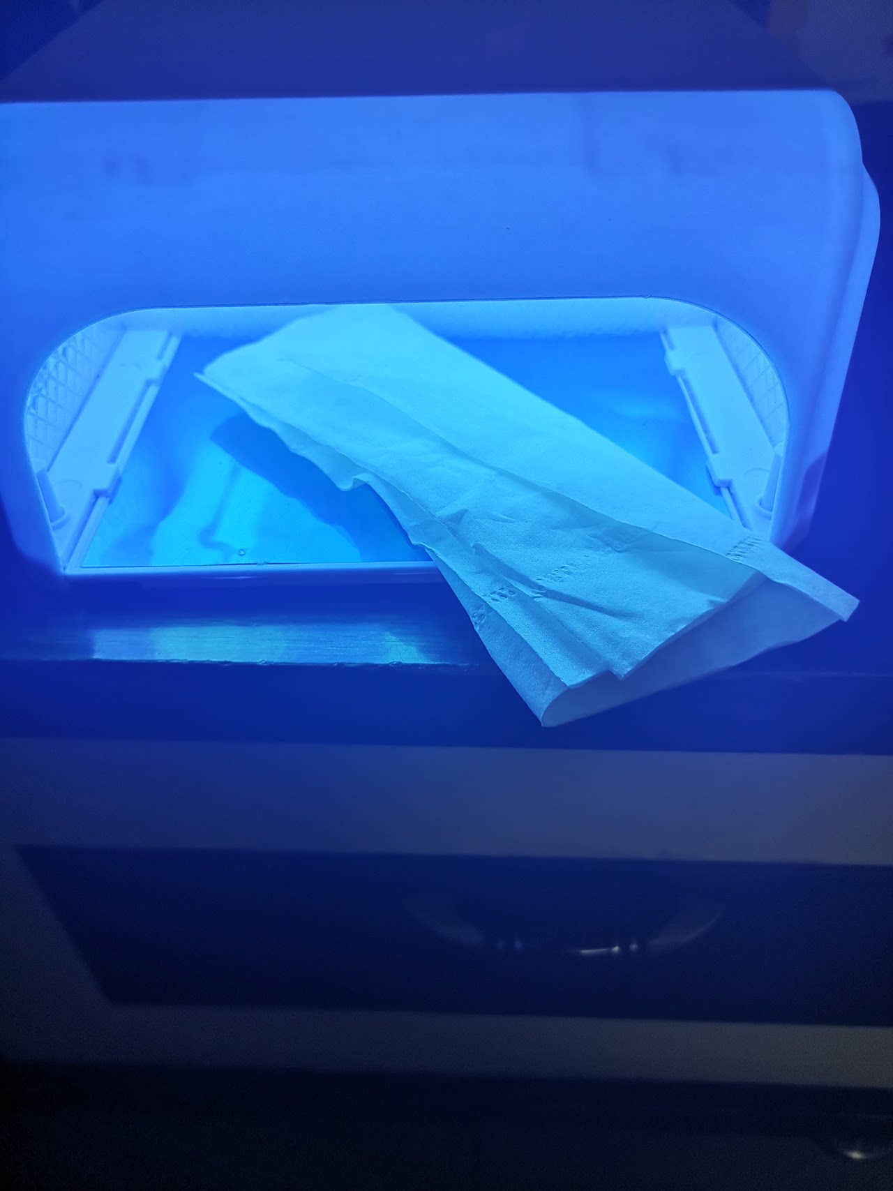 没有验钞机用紫光灯替代,照射没有发现荧光反应