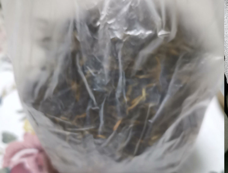 茶叶的包装罐很大,但是茶叶只占了一半,有塑料袋装着。