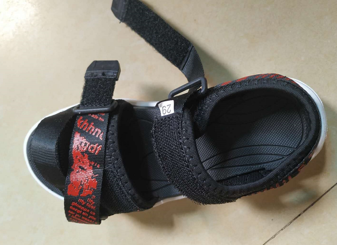 优点:鞋底比较软走路挺舒服的,黑色很耐脏适合调皮的男生,走起路来感觉运动风了,红色印花增添了活力。
