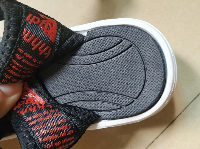 鞋子设计很好,前脚微微上翘,更加贴合脚型。沙滩鞋整体很轻。