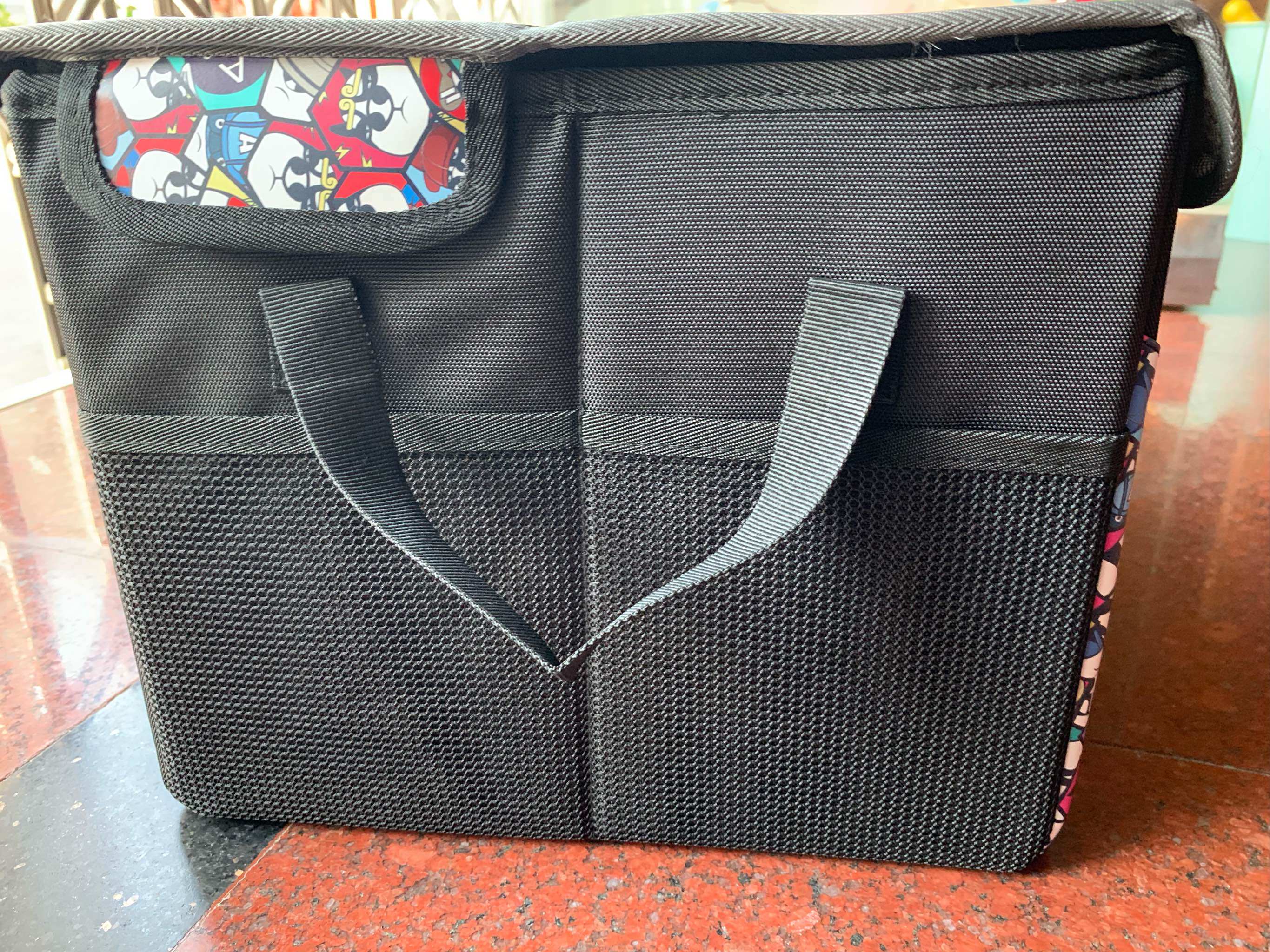 优点:价格适宜,箱子坚固实用,放后备箱不容易滑动.两叠式盖子设计,方便取物.
