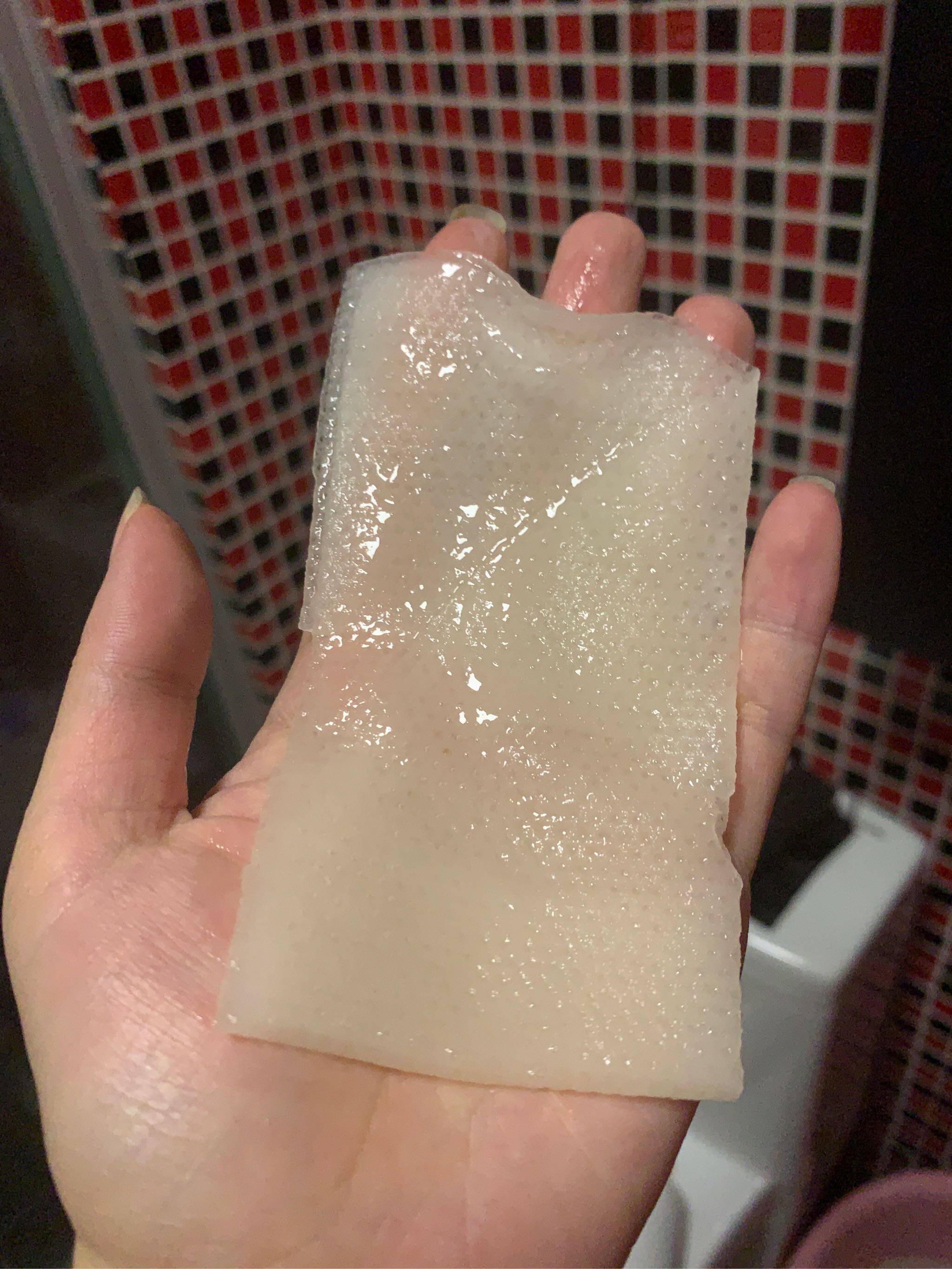 面膜纸是偏厚的,材质挺特别的,上面满满的精华