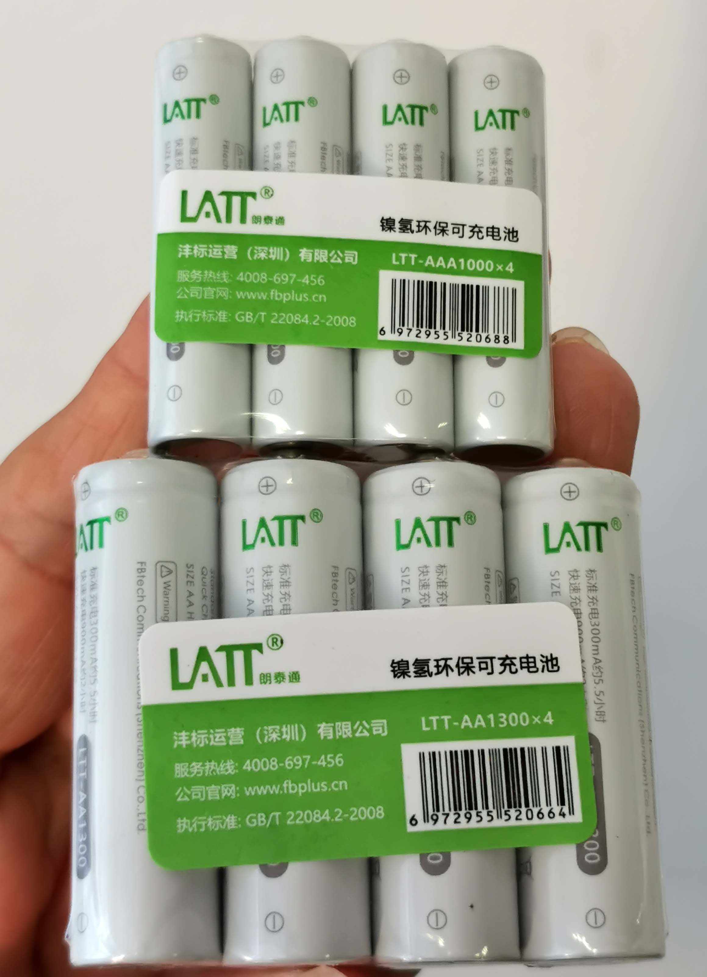 LATT镍氢AAA充电电池标1000mAH,而体积重量大不少的AA充电电池,容量只标1300mAH确实有点小,是不是标错了?因为感觉不比我以前买的标2000mAH的PISEN差嘛,可惜我的电池测试仪好久不用找不到了。