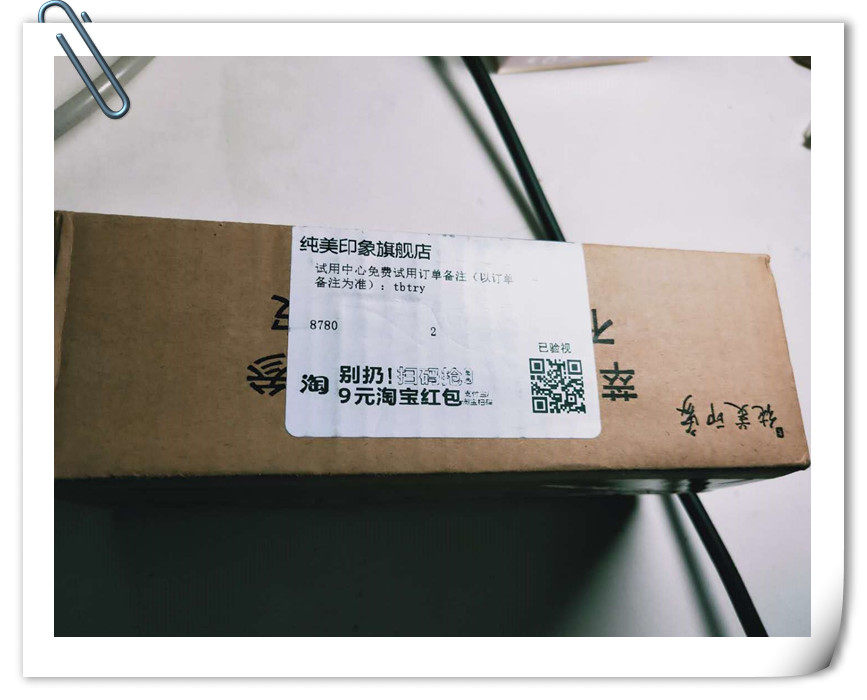 试客: 性别:女 年龄:40这是我23次申请试用中奖了,当收到淘宝店小二发的短信通知中奖的时候,又着实激动了一把,嘻嘻,好运气又再次降临我了,十分感谢《纯美印象旗舰店 》给的这次机会,https://detail.tmall.com/item.htm?id=613185661434&spm=a1z09.2.0.0.72732e8dvXcO3H&skuId=4318845845937, 发货相当快,收到包裹的时候,小箱子整整齐齐的。