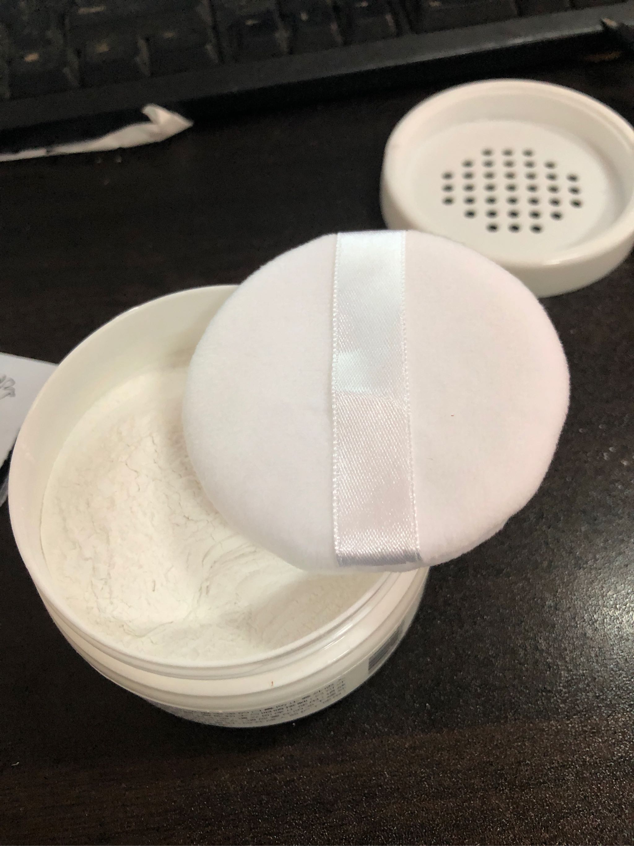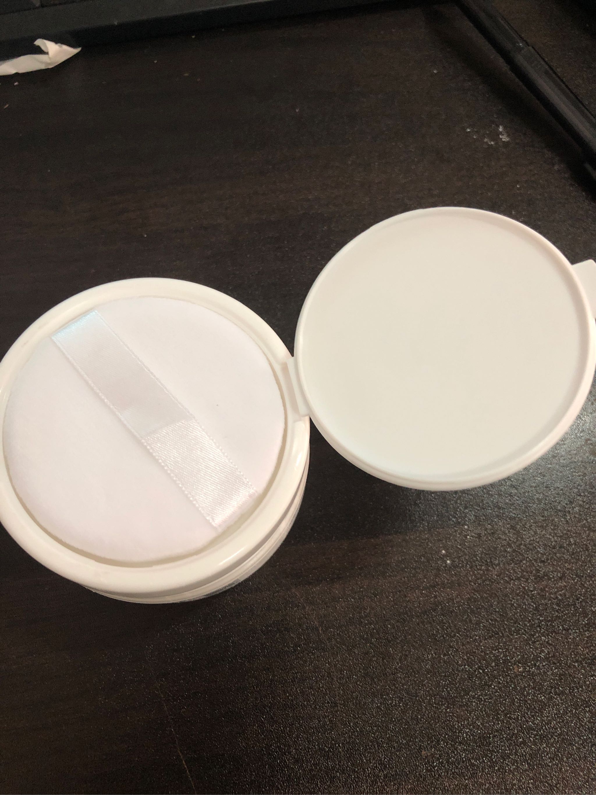 将粉未倒入容易中,用粉扑取适量涂抹于所需股肤上。