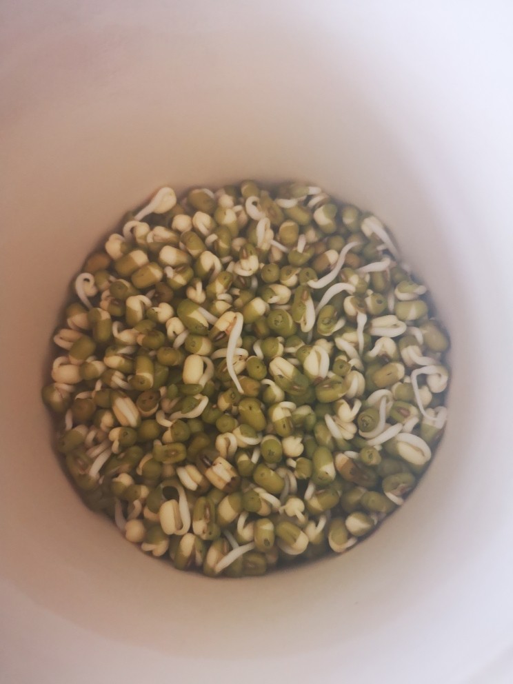 四天前我们把豆子泡了一个晚上,然后放到罐子里。第二晚上就出牙了