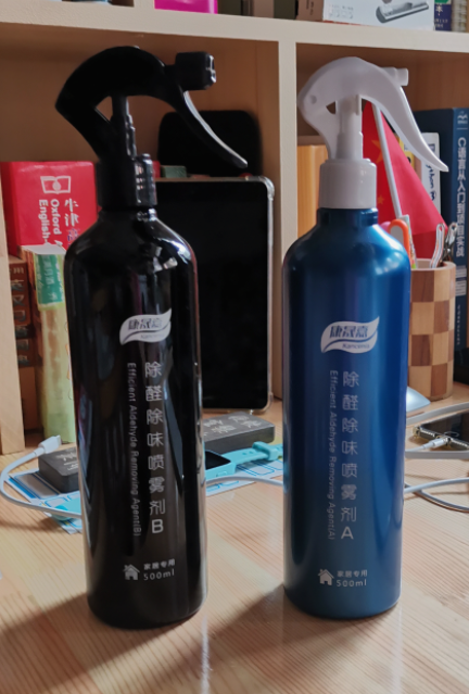 再使用B瓶,反复喷抹了两次,晾干。家里气味果然小多了。