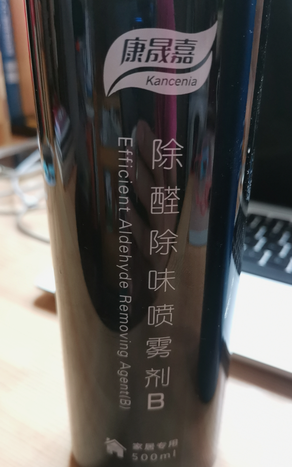 先把书桌收拾停当,实木书桌虽然材料环保,气味非常大,在家开窗吹了一星期还是有点过敏,之前用了另一个牌子的除醛剂效果不明显。检测发现室内甲醛和TVOC仍超标4倍多。