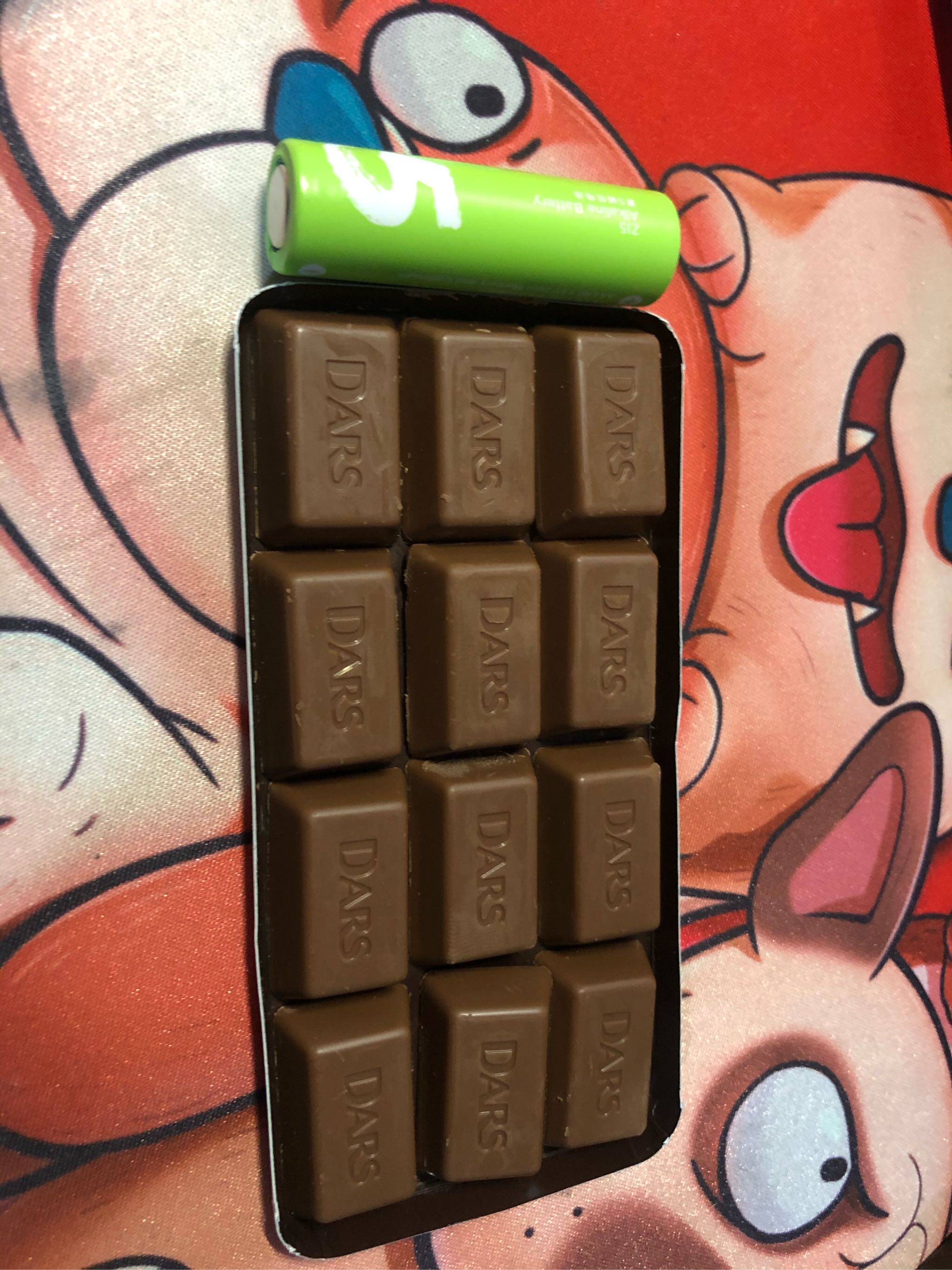 盒子里面是12颗独立的巧克力,左边是一节小米的5号电池,3粒加起来和电池差不多高。口感肥而不腻,不错