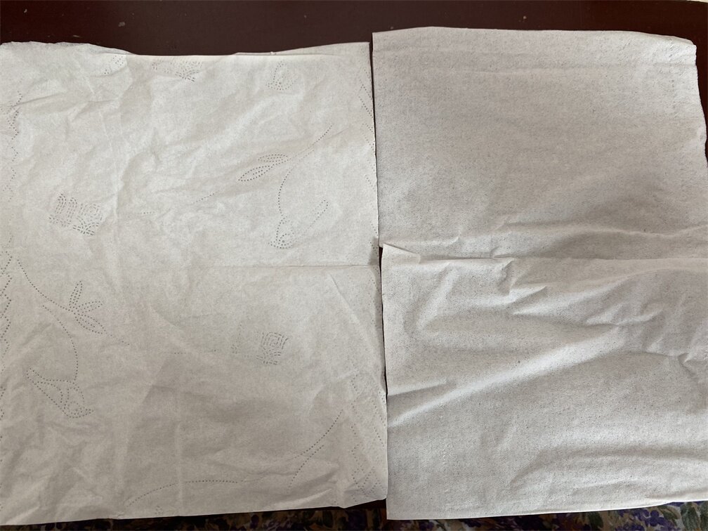 纸质采用厚竹浆制成,没有气味,压花设计很漂亮,这是我跟其它牌子的纸巾做的对比,明显厚很多。