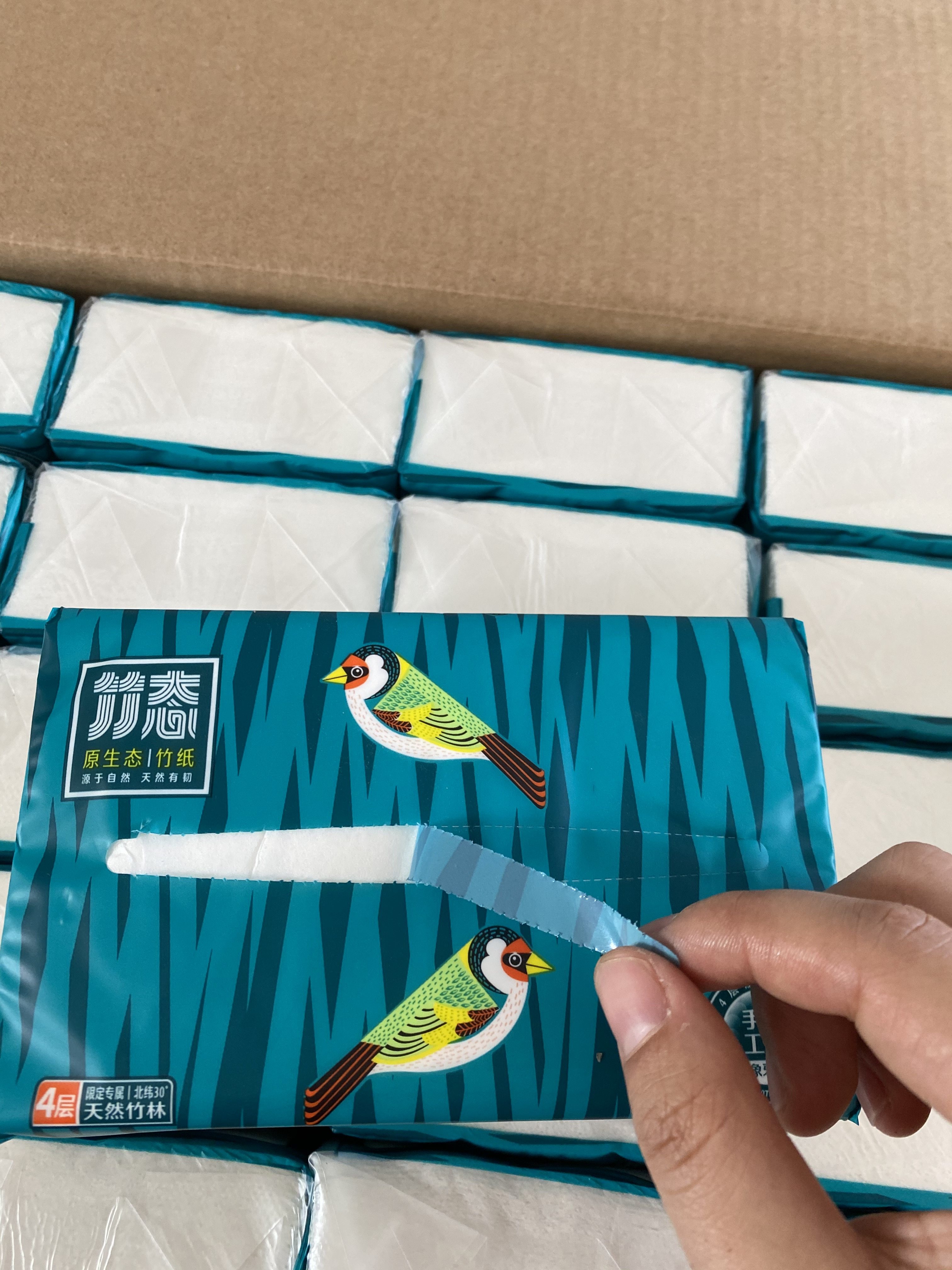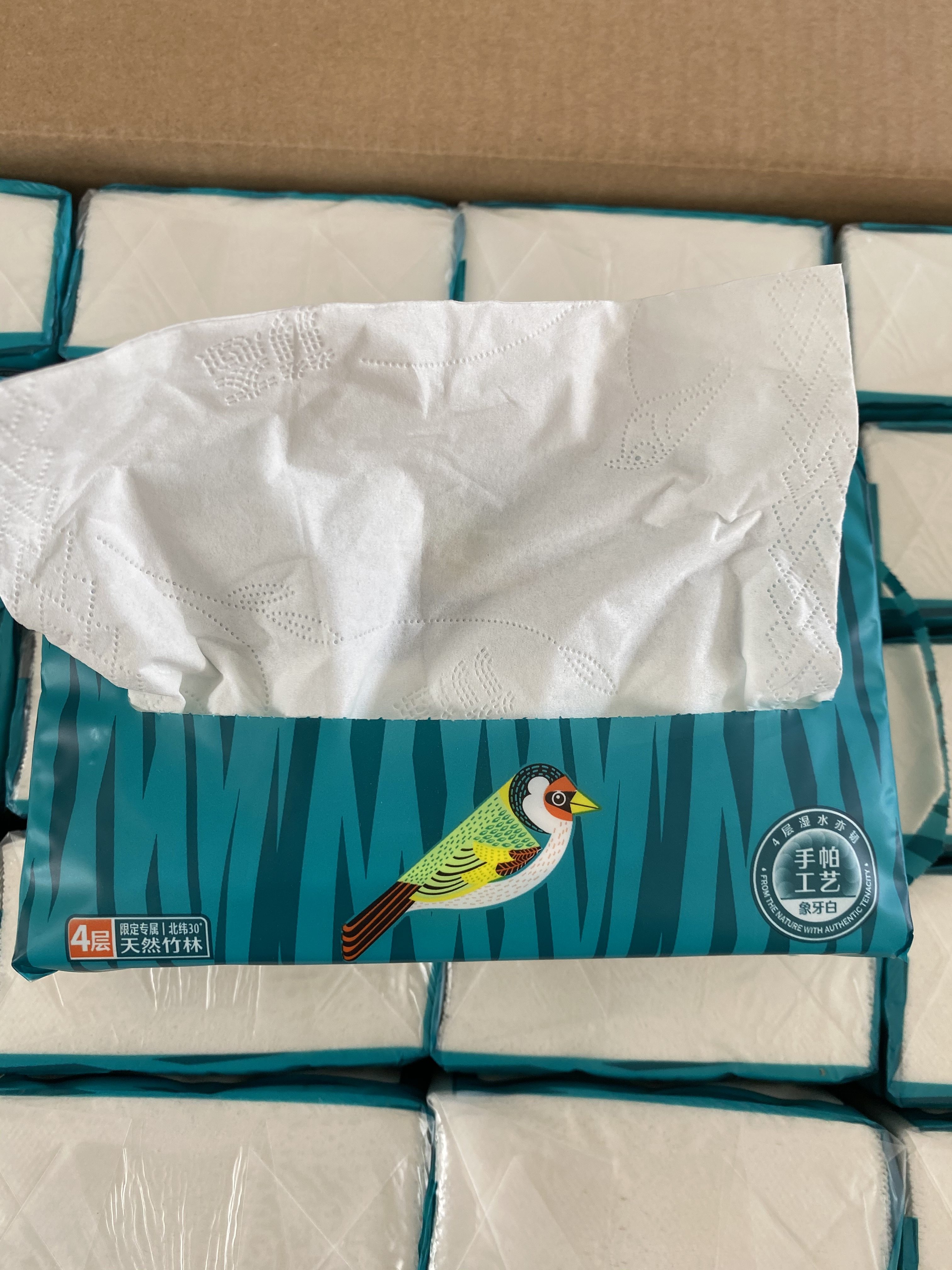 纸巾包装设计合理,大小适中,抽取方便。纸质采用厚竹浆制成,没有气味,4层加厚,韧性非常好,不掉纸屑,湿水也不易破。价格合理,性价比高。