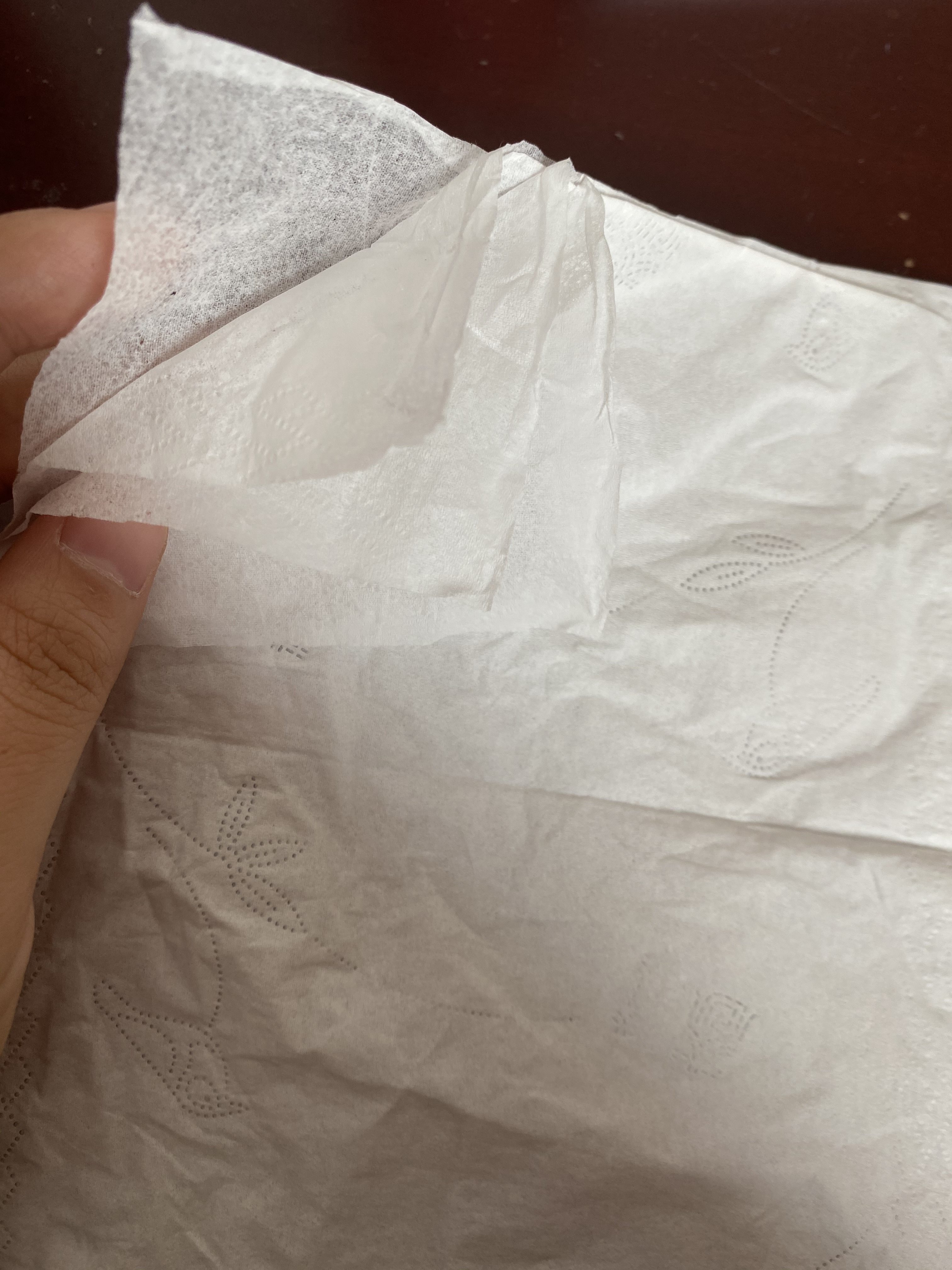 湿水以后也不破,不掉纸屑,用来擦脸,擦物体表面都可以。
