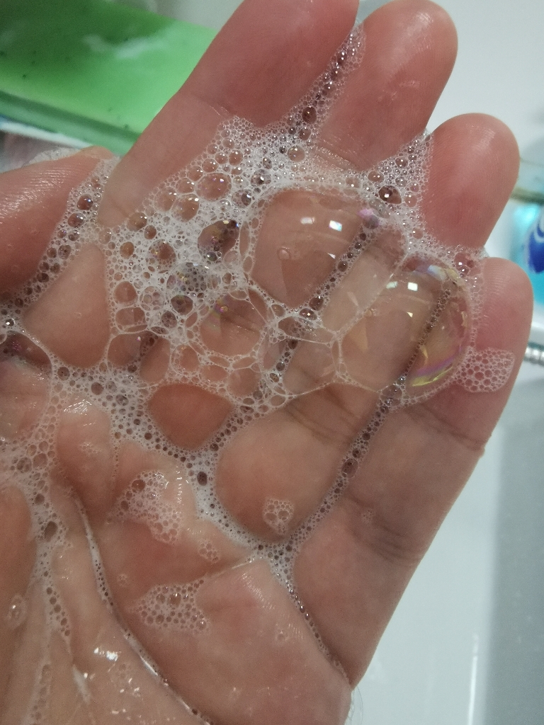 优点:泡沫很细腻,有淡淡的香味,很大一瓶很耐用,包装很好看,送人很上档次
