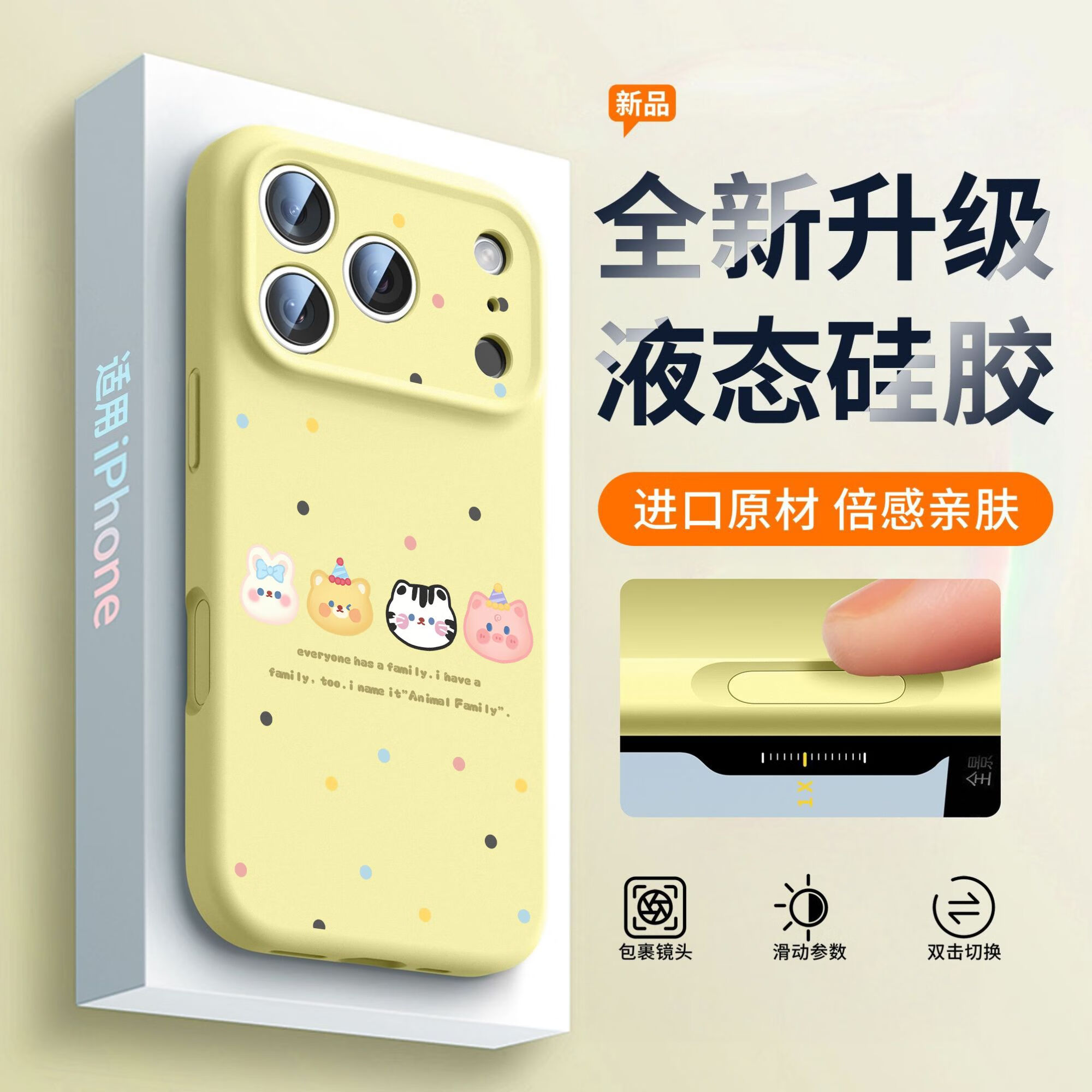 与乐(yule)新款适用iPhone17液态硅胶手机壳苹果17ProMax保护套17Pro相机拍照Air按键一体全包防摔带挂绳情侣 【奶黄色】 iPhone17Pro