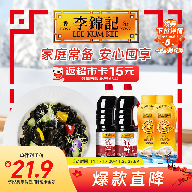李锦记锦鲜生抽1.51kg*2+金蚝油550g*2 组合装 家庭常备调味品