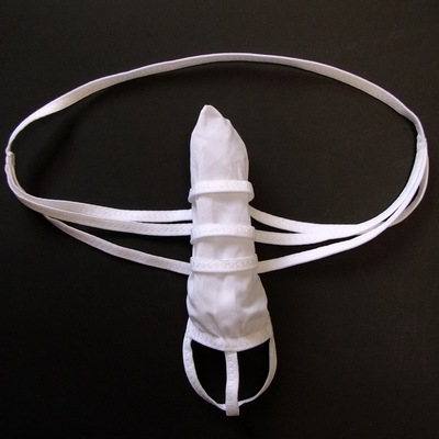 捆绑jj套牛奶丝透明镂空丁字裤