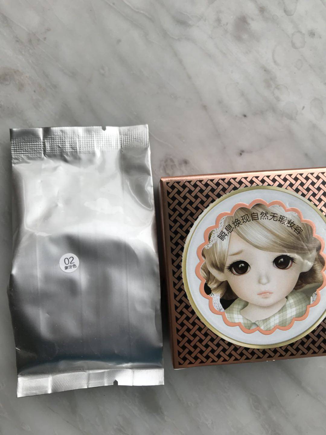 气垫外包装很安全精致,不怕摔坏,完美。大眼睛娃娃的纸盒内包装也很可爱,初次盒在手里欣赏了半天才舍得打开。还赠送了替换装,很贴心,卖家很用心。