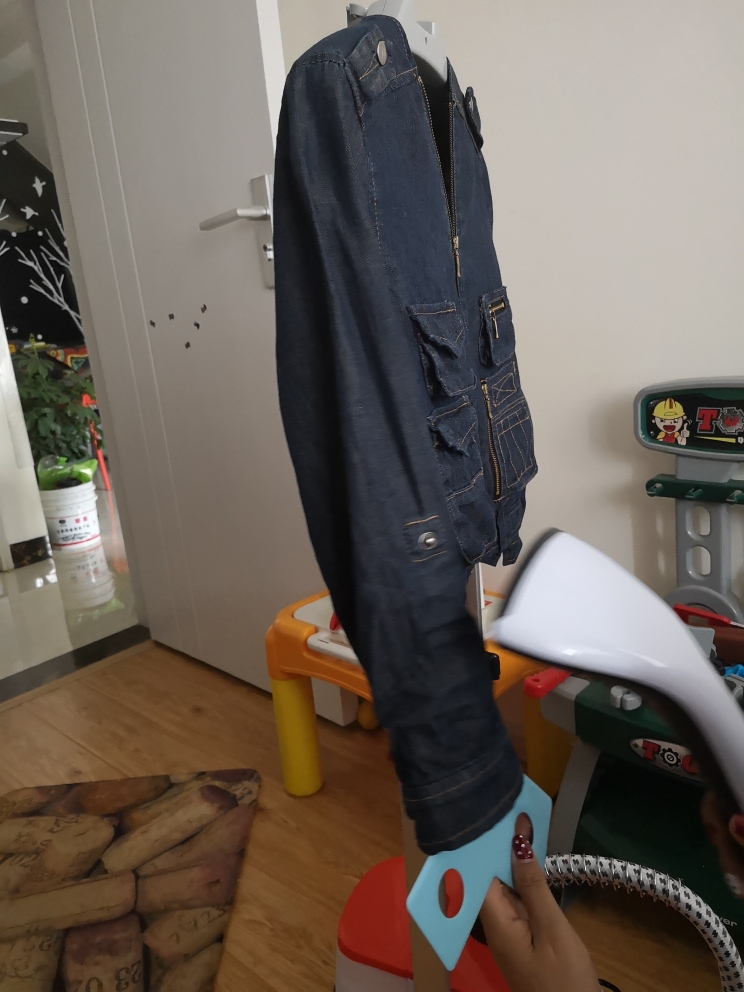 牛仔衬衫长度还算合适,但是还是要蹲着烫完,没有烫板非常不方便。如果是要买这款产品,建议购买有烫板的。