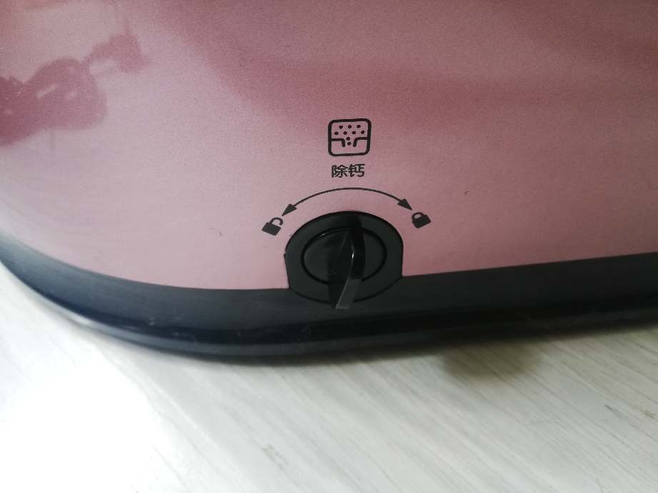 最下面设计有除钙旋钮,两个小图标:锁、开锁。很直观地解决水垢问题,定期除钙,清洁熨衣,可以保持蒸汽通畅,延长产品使用寿命。